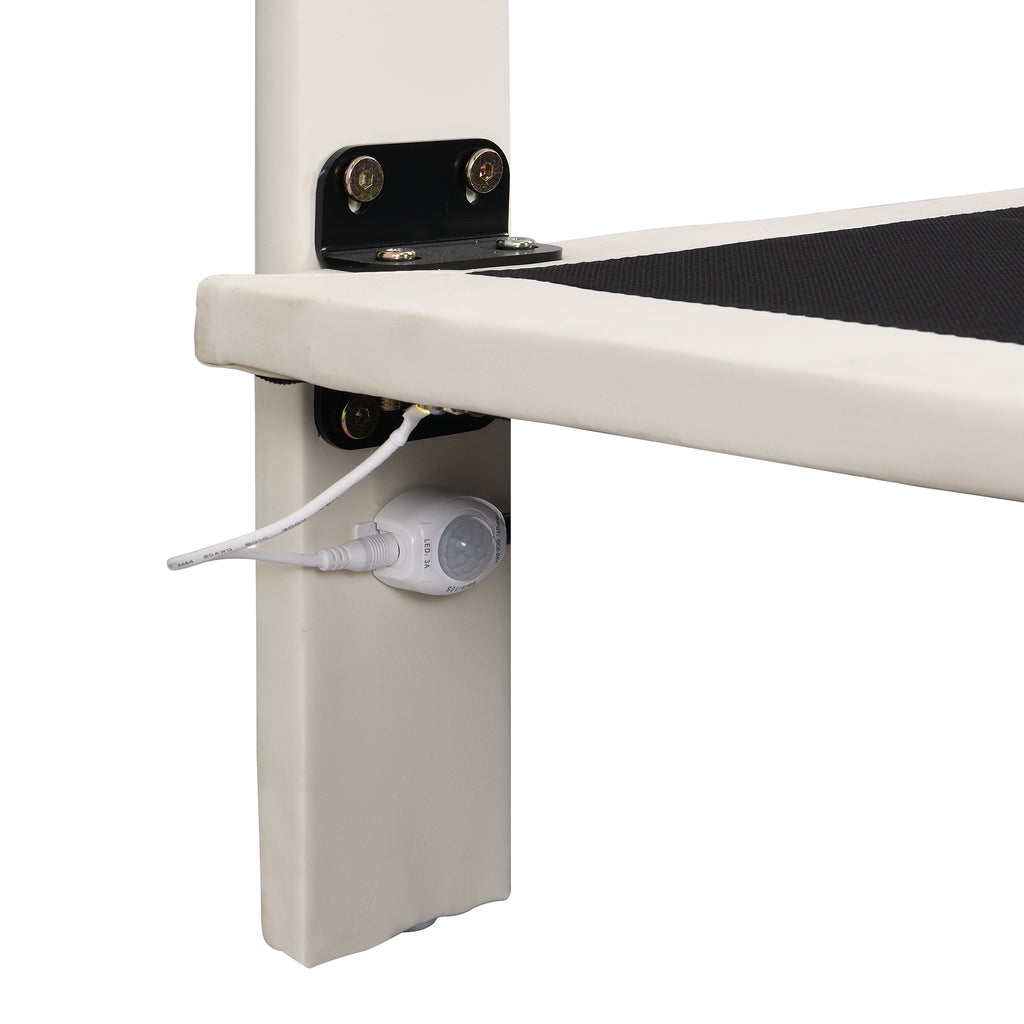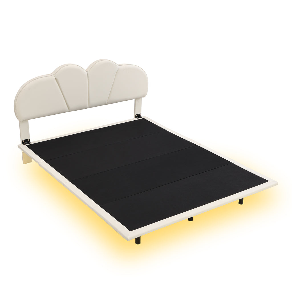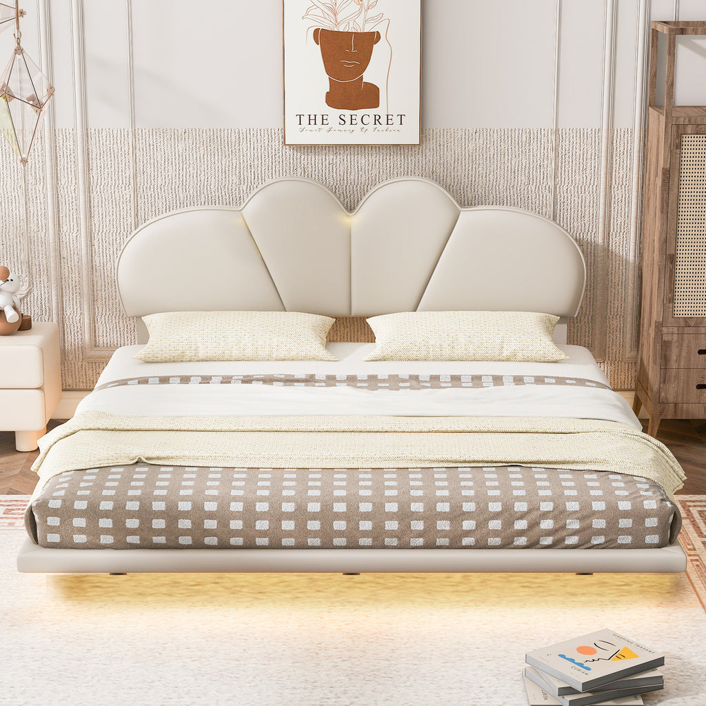 Queen Size Upholstery LED Floating Bed with PU Leather Headboard and Support Legs,Beige