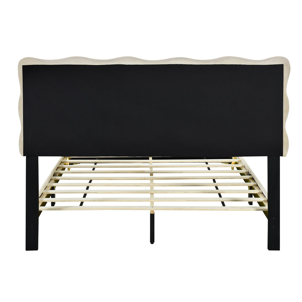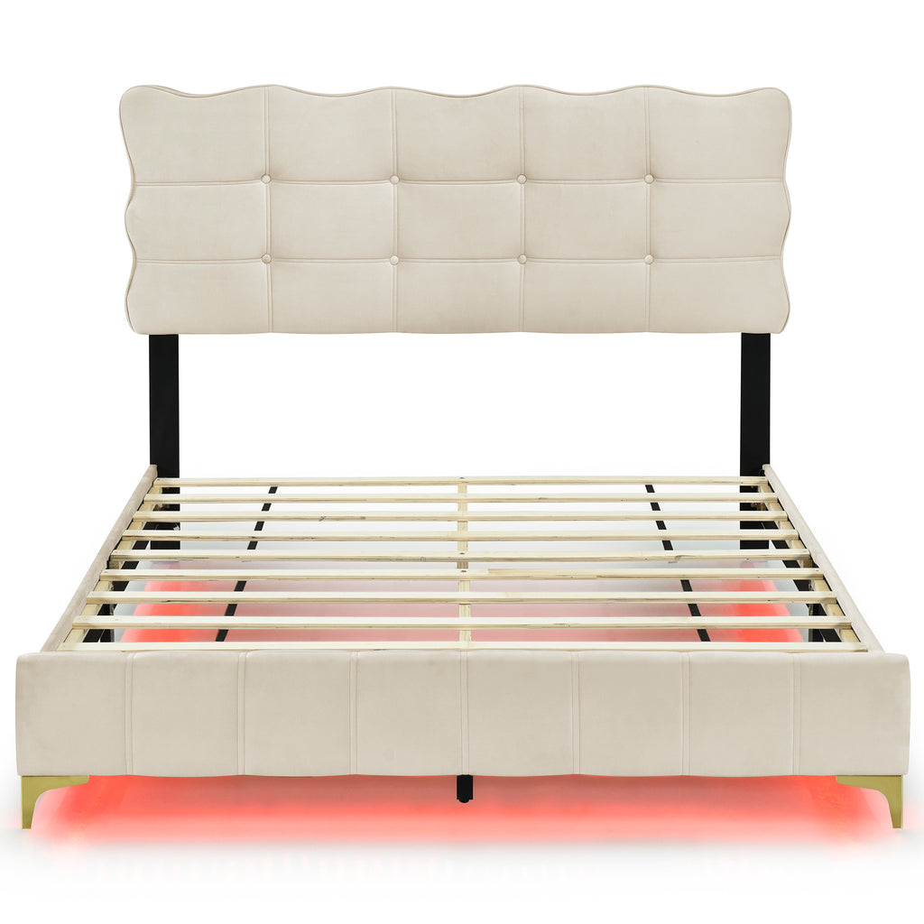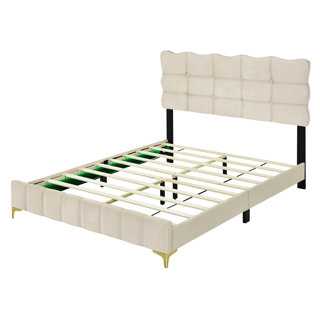 - [Elegant Design] Upholstered in carefully-selected Velvet fabric and with button-tufted design headboard, this platform bed not only suits any home décor, but is timeless in its design. Supporting legs are metal and sparkling that makes the layout of the room stylish.