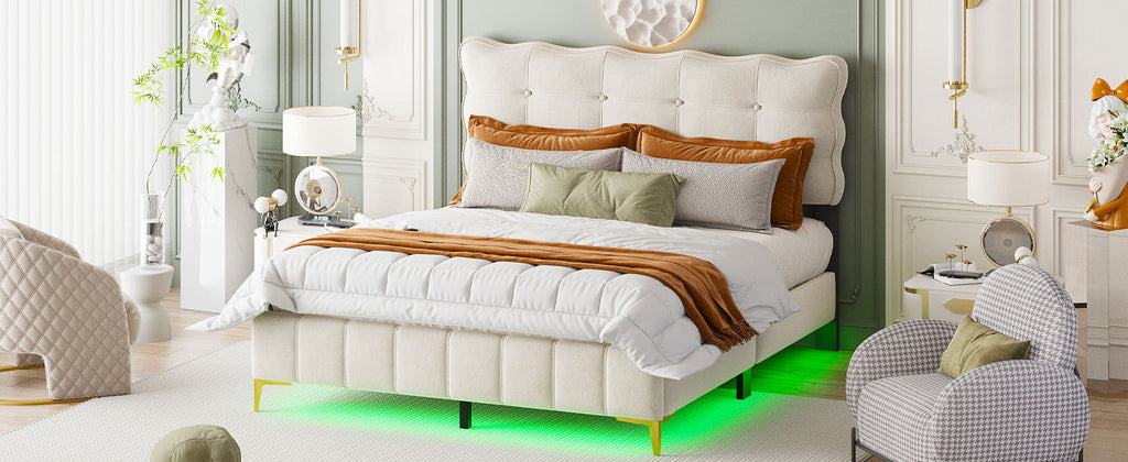 - [Modern LED Light Design] Platform bed frame is equipped with latest RGB light bars.It includes 16 colors of LED lights and the speed and mode of lights can be changed with the ryhthm of the music.Colorful lights make your life colorful, you can change lights by remote control or APP at ease.