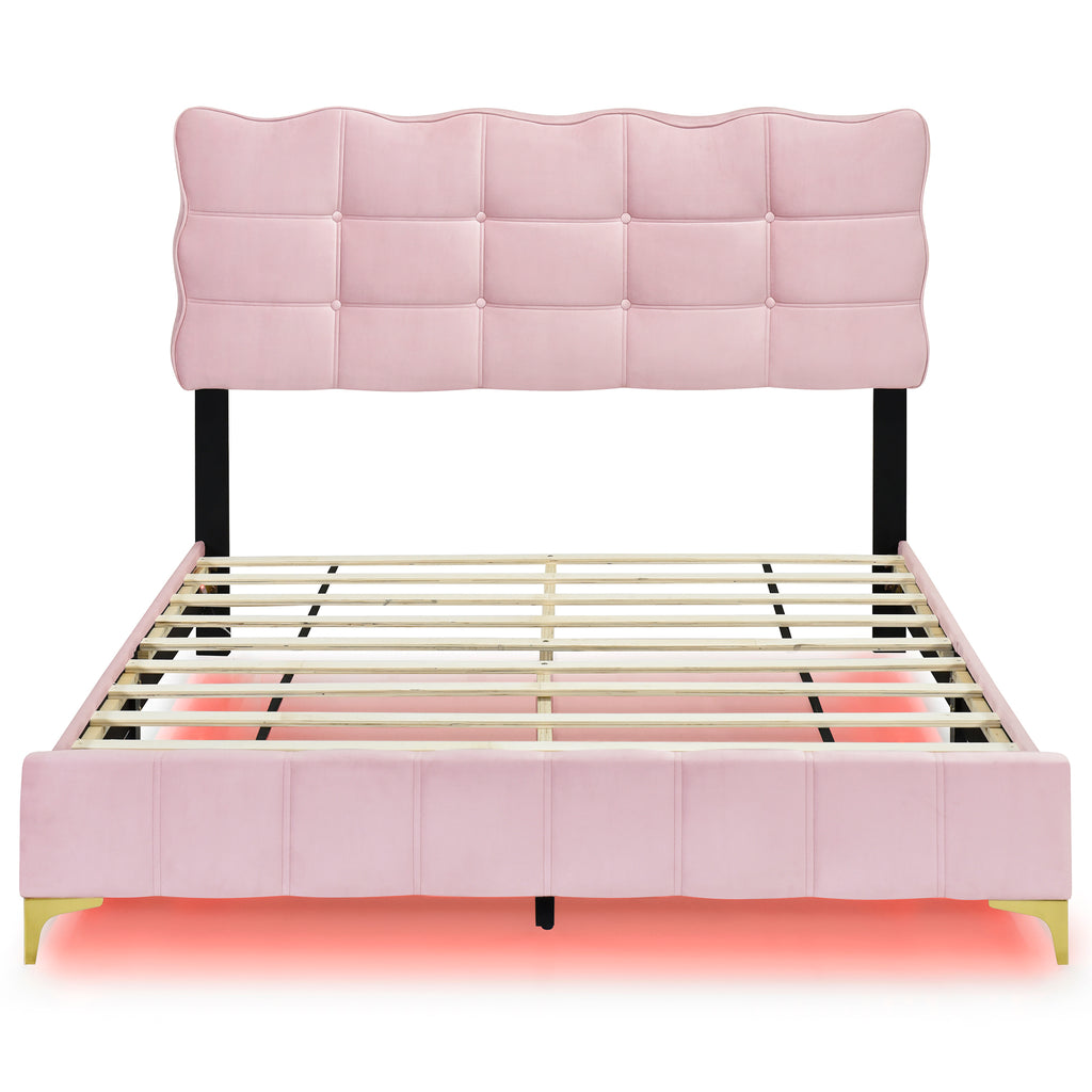 - [Elegant Design] Upholstered in carefully-selected Velvet fabric and with button-tufted design headboard, this platform bed not only suits any home décor, but is timeless in its design. Supporting legs are metal and sparkling that makes the layout of the room stylish.