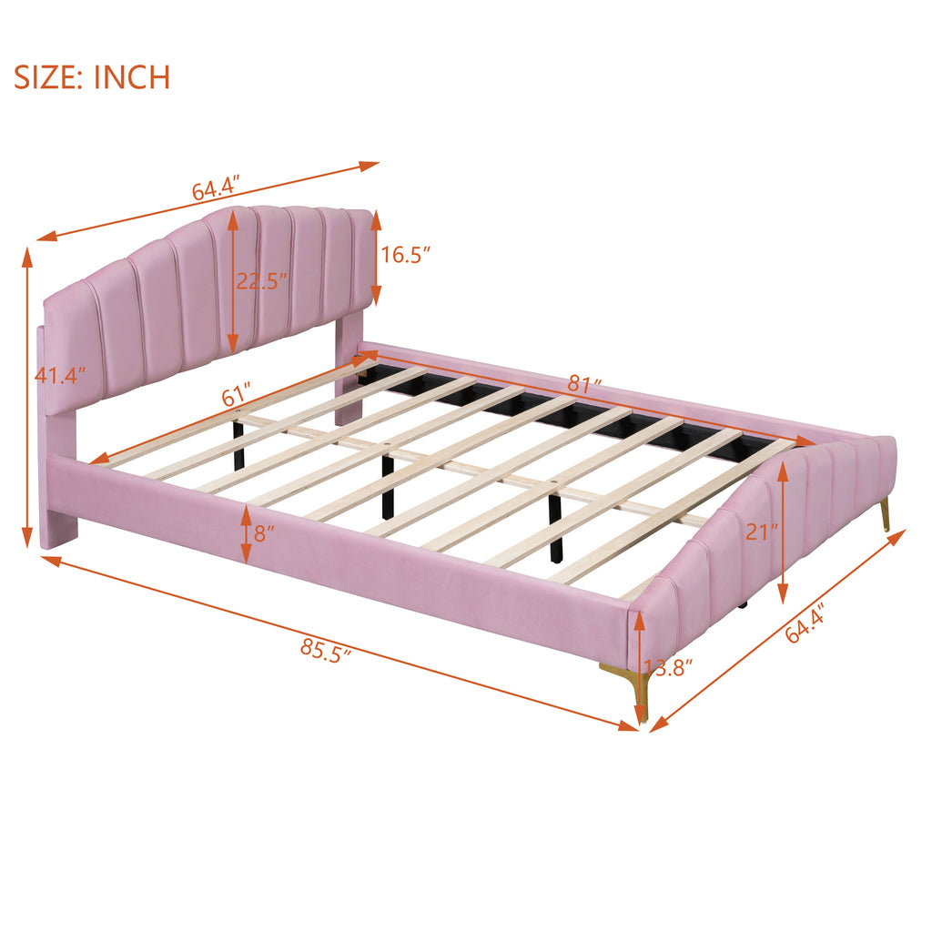 - [Elegant Design] Upholstered in carefully-selected Velvet fabric, and with stylish stripe design on the headboard and footboard, this platform bed not only suits any home décor, but will be a beautiful piece for your room.The golden metal bed legs underneath the bed adds more elegance and decency for the bed.
