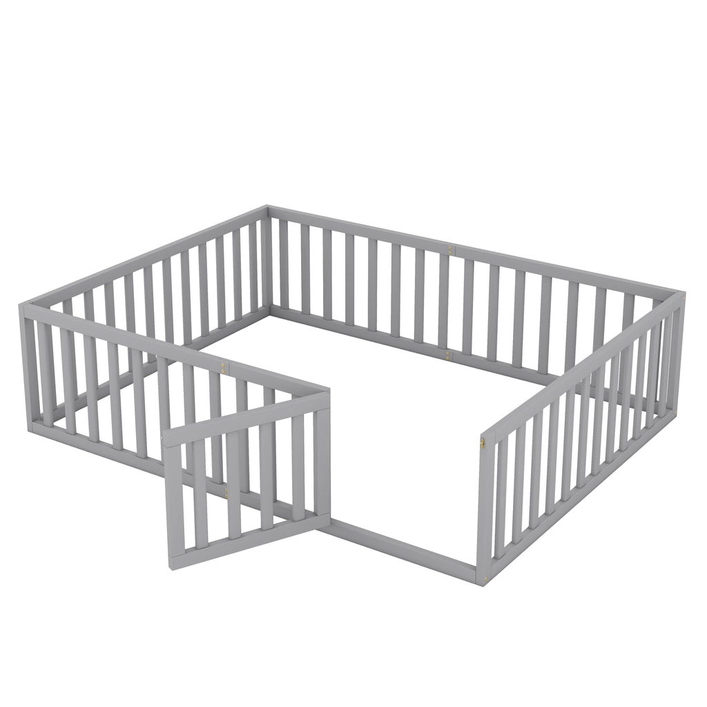 - {Fun Design}This wooden Floor Bed frame has a circle of fences. There is a small door that can be opened and closed, which increases the interest of the bed and creates a more safety sleeping space.