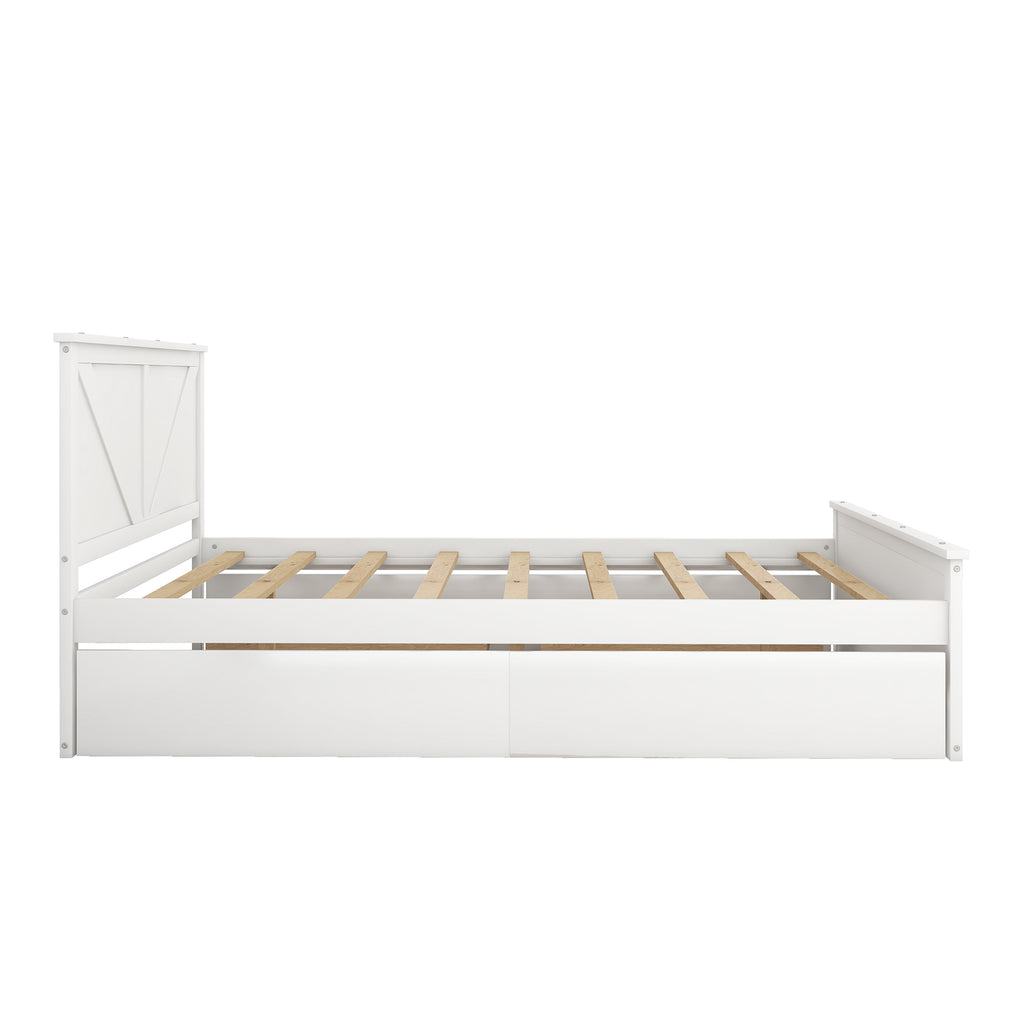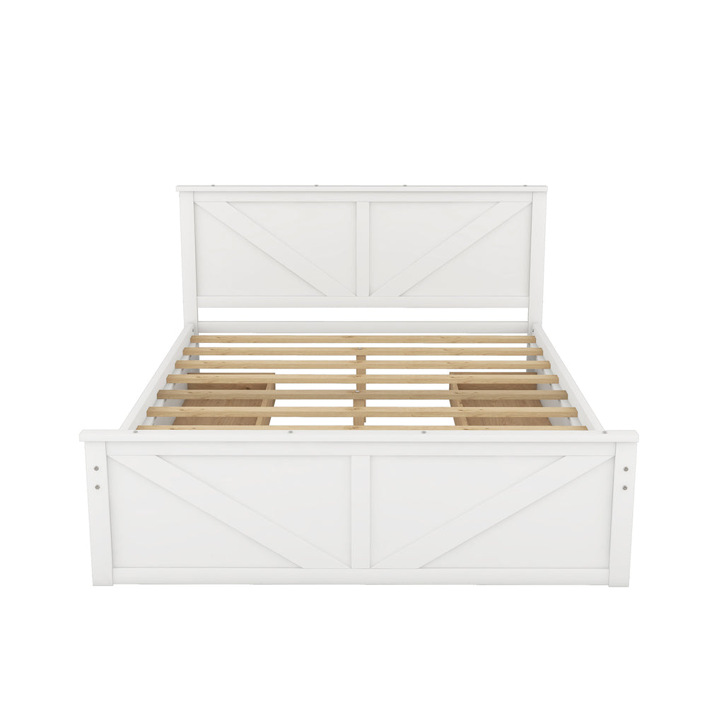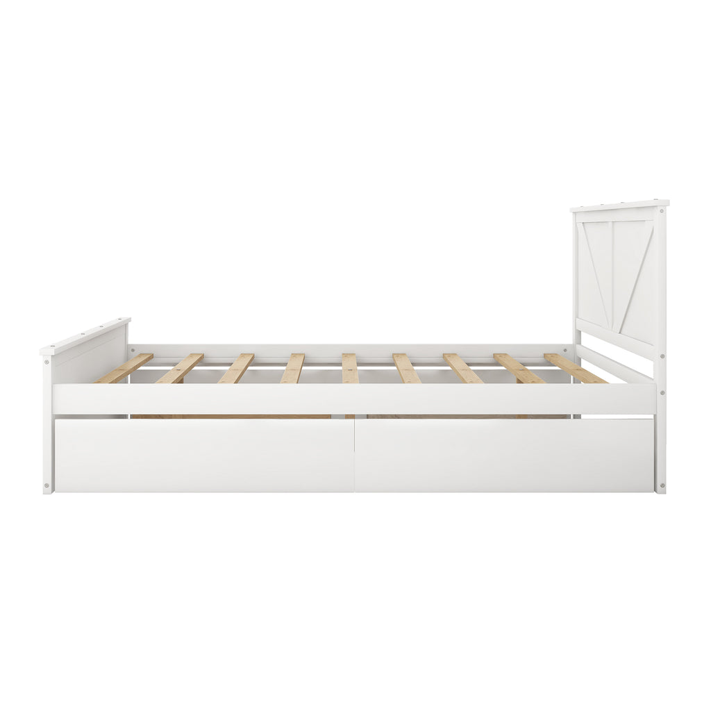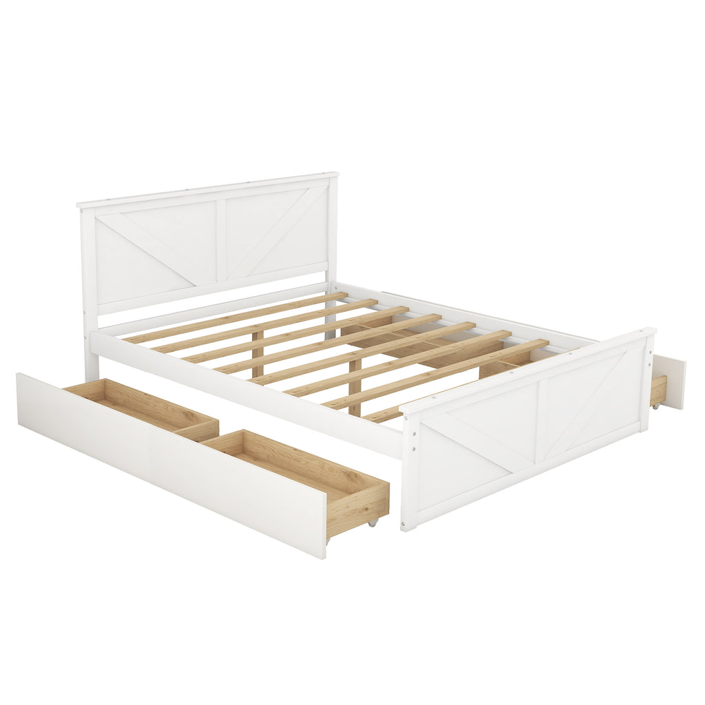 Queen Size Wooden Platform Bed with Four Storage Drawers and Support Legs, White