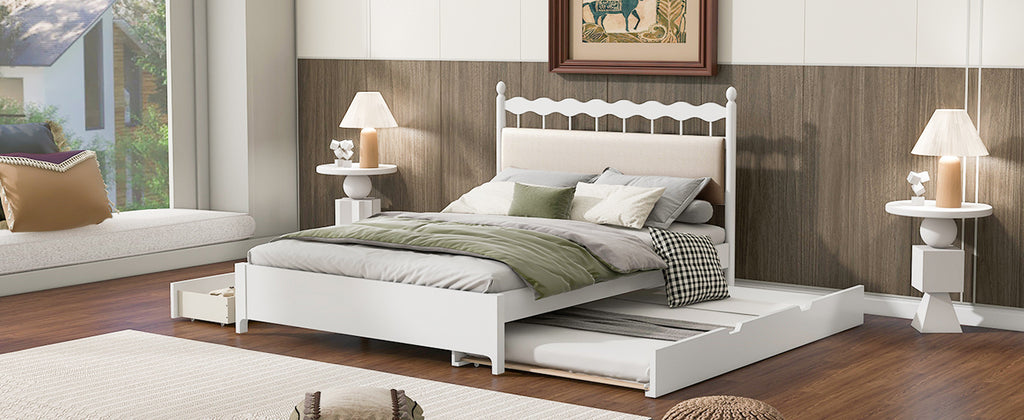 - [Extra Sleeping Space] This bed with trundle under bed is perfect for ones who love sleepovers. Such a versatile piece, bringing functionality, versatility, and style to your home, perfect space saving functionality.