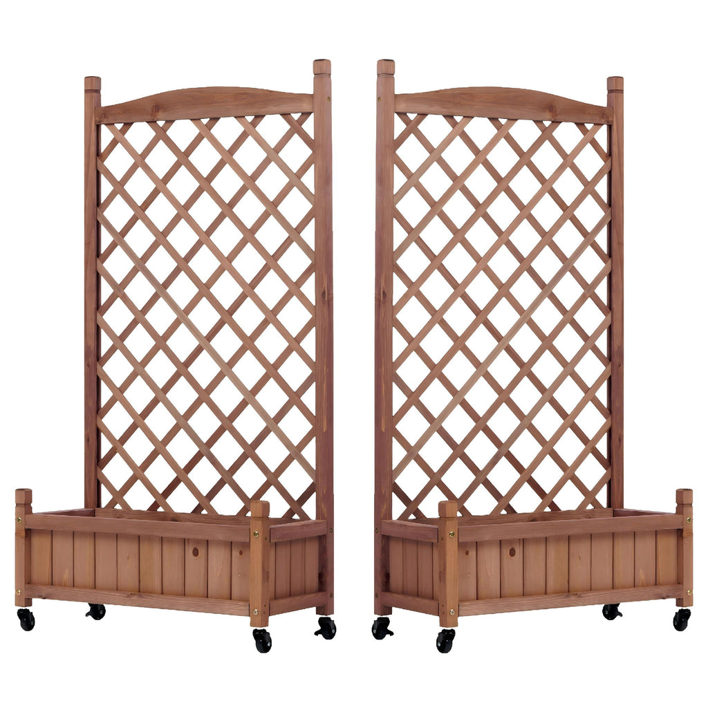 Raised Garden Bed With Trellis 2 Pack, Outdoor Planter Box & Plant Stand With Climbing Racks - Brown