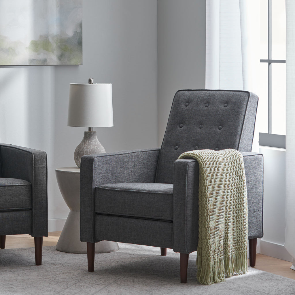 - MID-CENTURY MODERN: Blending together iconic tapered legs with a smooth upholstery, our recliner offers a mid-century look to your lounge space. With its clean lines and understated look, this chair uses new materials to reimagine a traditional design.