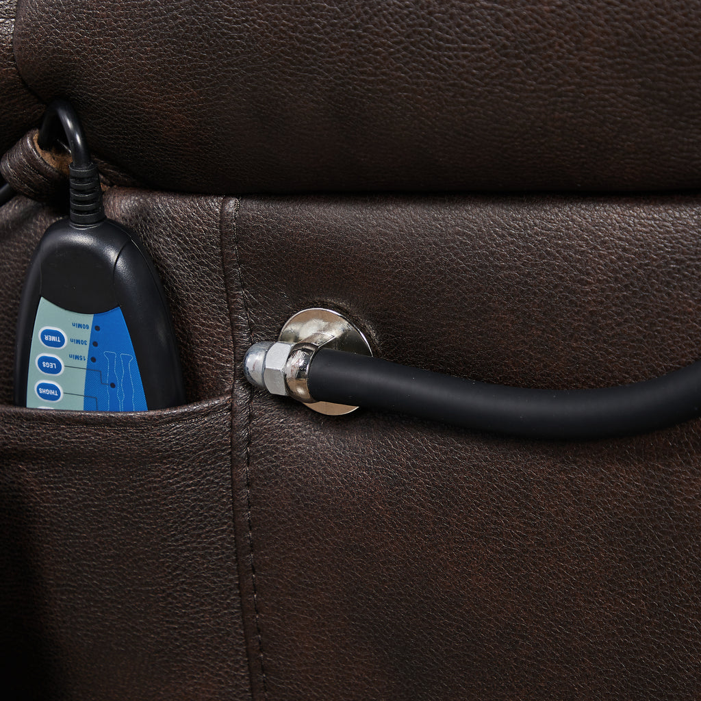 With dual OKIN motor,the backrest and footrest of this power recliner can be adjusted individually. The chair helps seniors to stand up with a 4-button hand controller, which is easy to use. The position lock of the lift chair is INFINITE, so you can recline to almost any angle within the range (105° - 180°) and stop it at any time. It comes 8 vibrating points around the chair and 1 lumbar heating point. Both can turn off in fixed time 15/30/60 minutes. (Heating function works with vibration separately.)Isn't it better to watch TV or read books while having a massage at the same time? And the heat pad works perfectly with your favorite blanket - both to bring you a warmer winter. Weight capacity of 300 lbs. Two cup holders and side pockets for drinks or other small items within reach are good design for your daily using. Breathable Bonded Leather is quite thick, soft and plush. It features high-quality material for easy cleaning(just wipe with cloth) and providing you superior comfort, also certain effect of anti-felting and anti-pilling. With a adjustable phone holder, you can use the phone easily when you lay or sit in the chair.