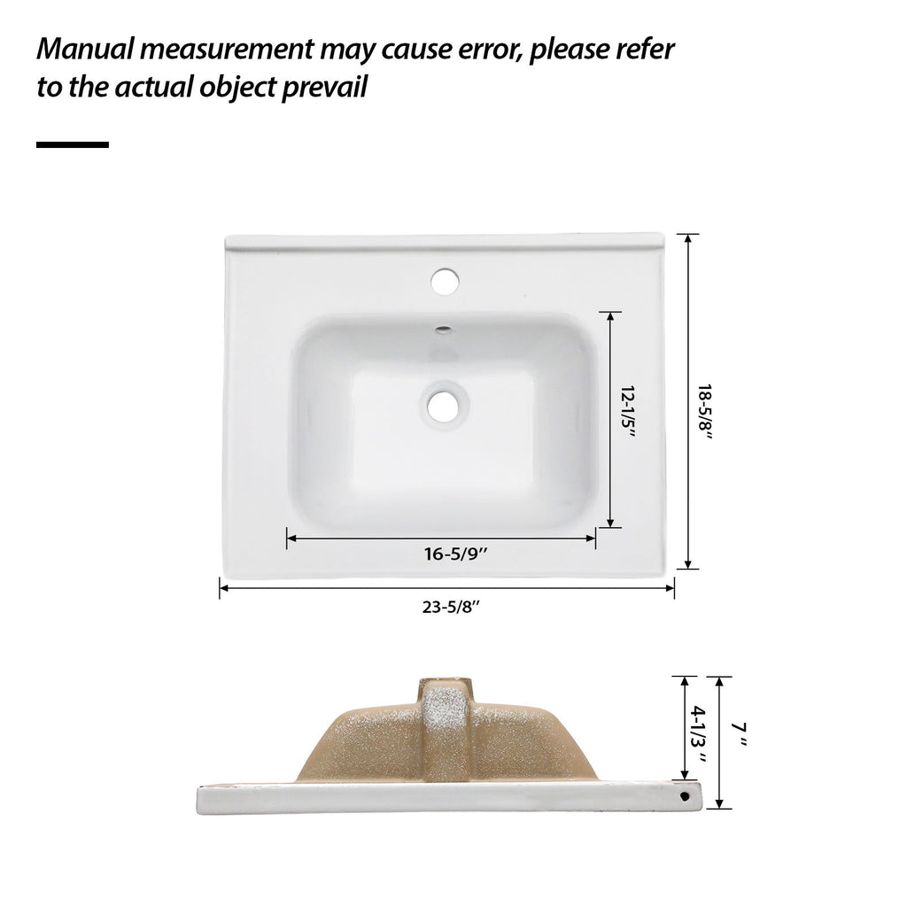 Rectangular Single Vanity Top With 1 Faucet Hole And Overflow Ceramic - White