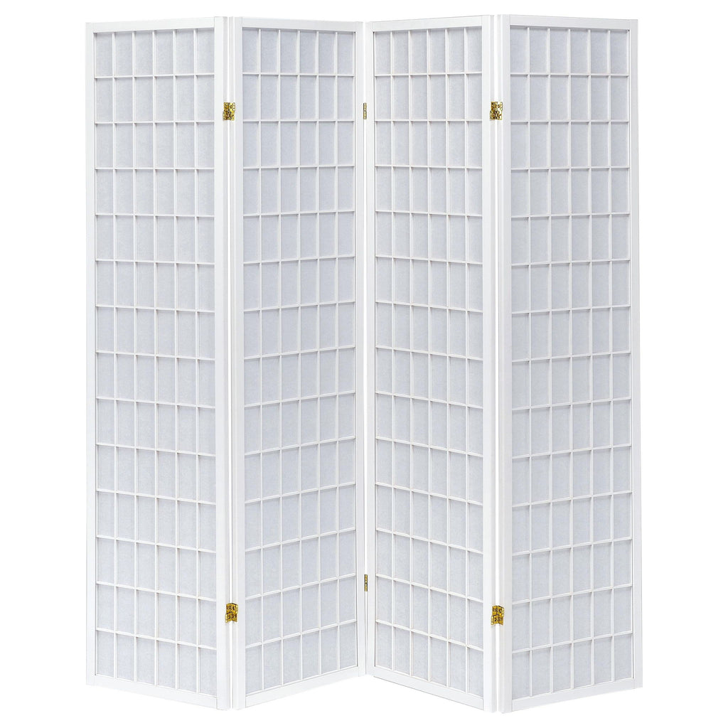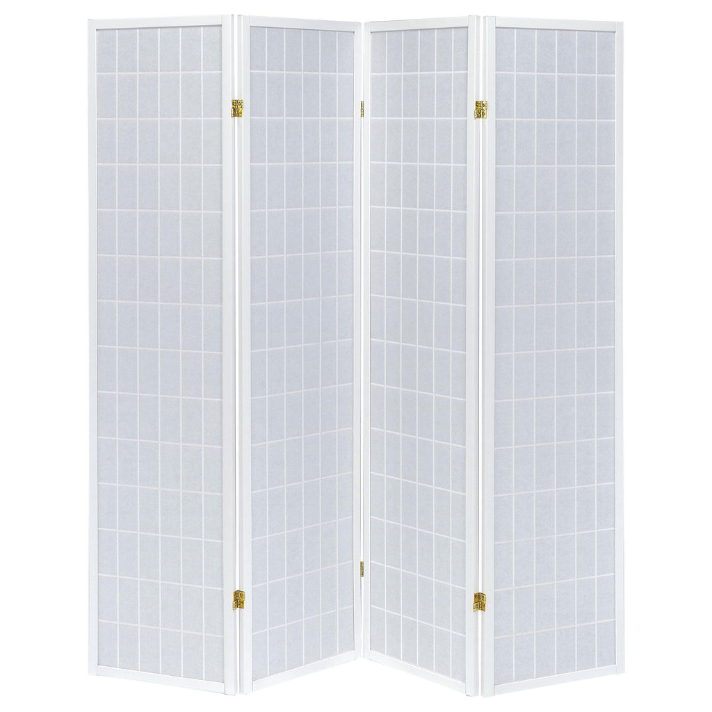 This four-panel folding screen provides a versatile solution for privacy and style. Designed with a linear grid motif, it adds a clean, contemporary touch to any space. The hinged construction allows panels to expand fully for maximum coverage or fold inward for a decorative accent. Built with a durable rubberwood frame and lightweight fabric panels, it creates an elegant partition for living rooms, bedrooms, or shared spaces while maintaining an airy, open feel.