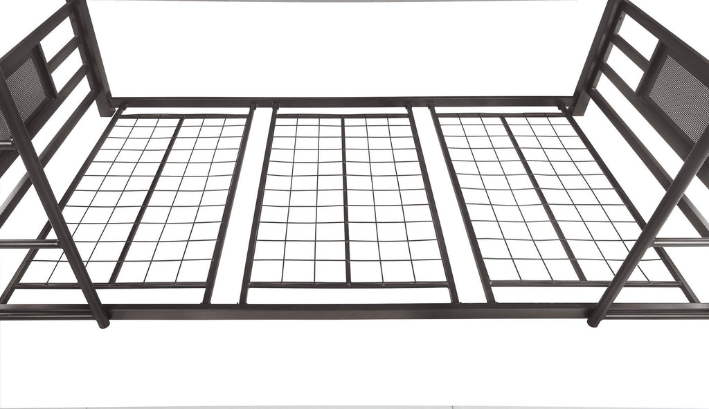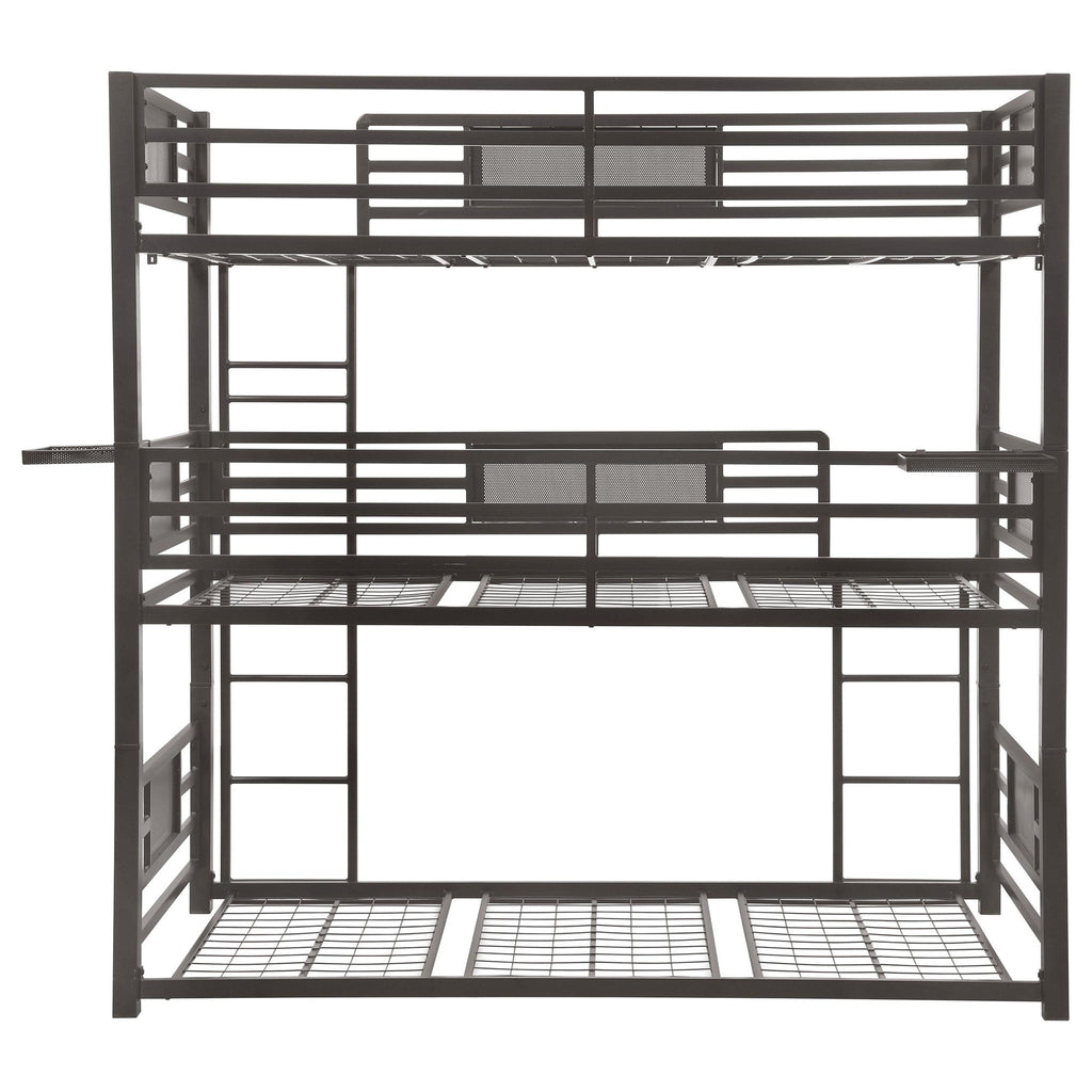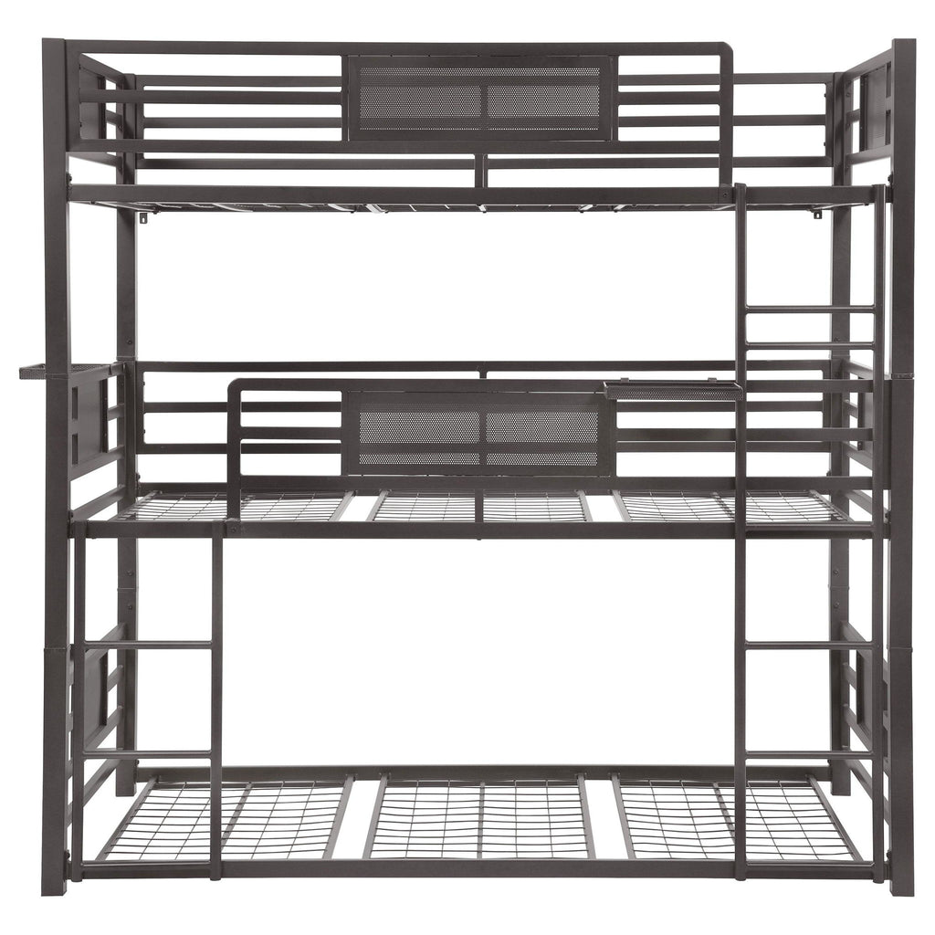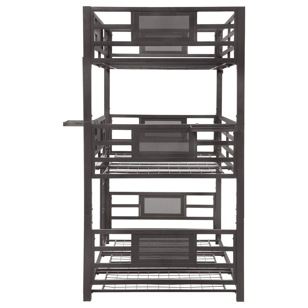 Create a cohesive, contemporary feel in any room with this triple bunk bed. With the ability to separate into three beds, or any combination in-between, this base lies flat on the floor. Built-in ladders help to elongate the streamlined silhouette, with classy and matching guard rails. A dark bronze finish sleekens the smooth lines and adds structure to any modern space. These bunks are sleek and clean, perfect for a modern motif.