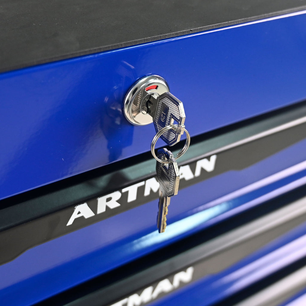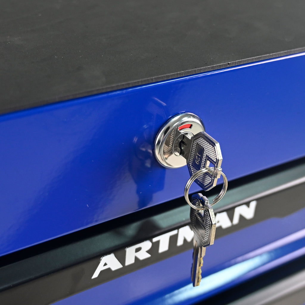 Rolling Metal Tool Chest With 7 Drawers, 20" Steel Storage Cabinet With Ball Bearing Slides - Black / Blue