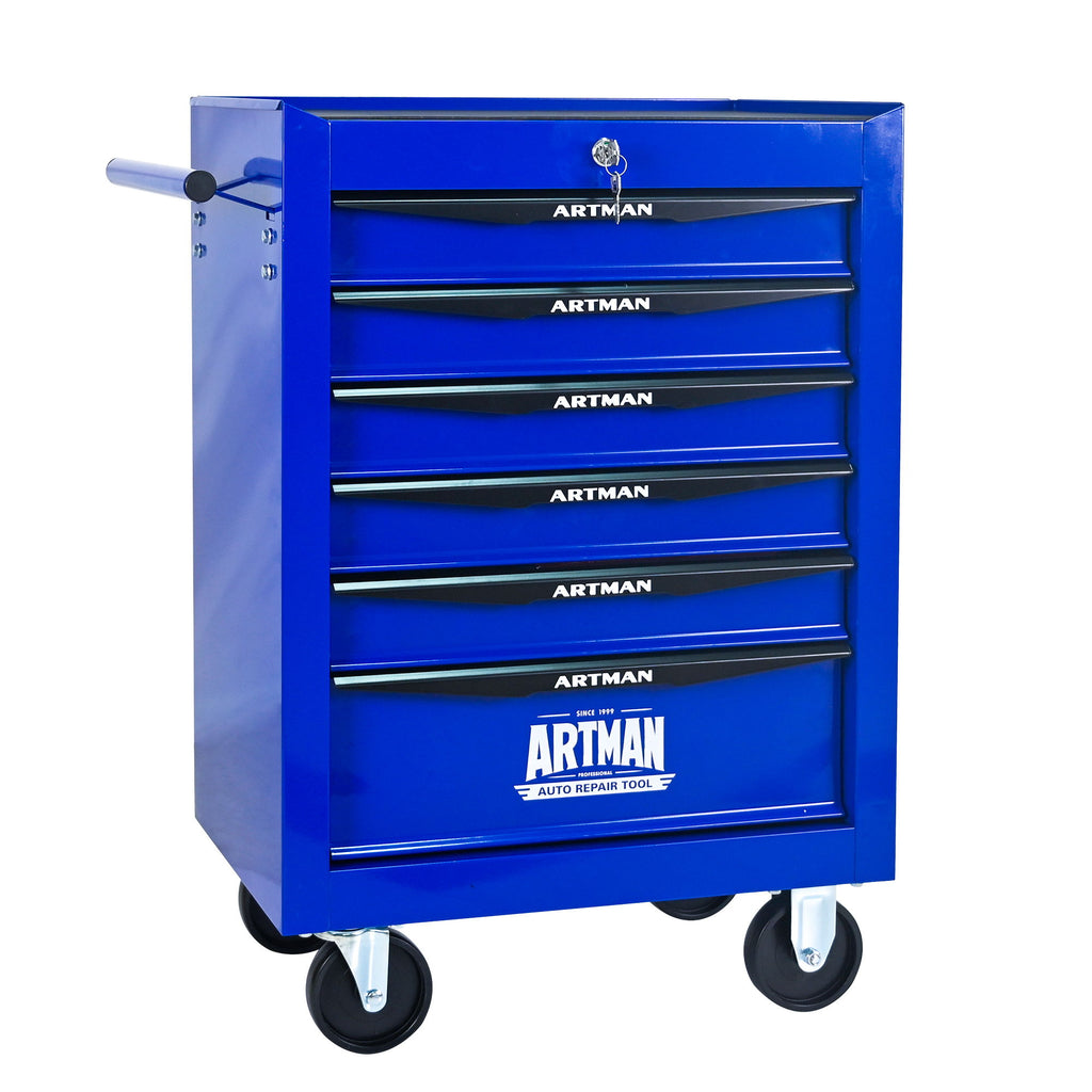 Rolling Metal Tool Chest With 6 Drawers, 20" Steel Storage Cabinet With Ball Bearing Slides - Black / Blue