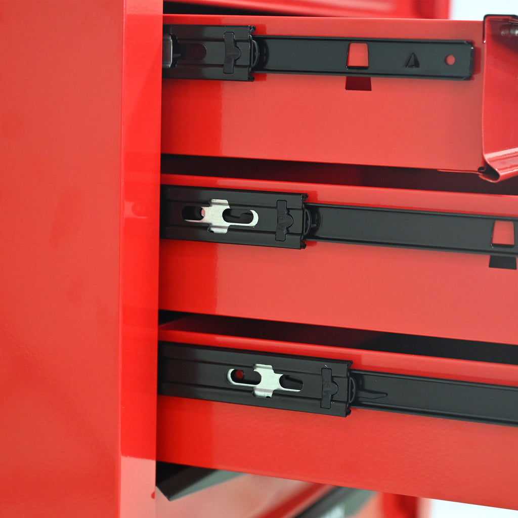 Rolling Metal Tool Chest With 7 Drawers, Steel Storage Cabinet With Ball Bearing Slides - Black / Red