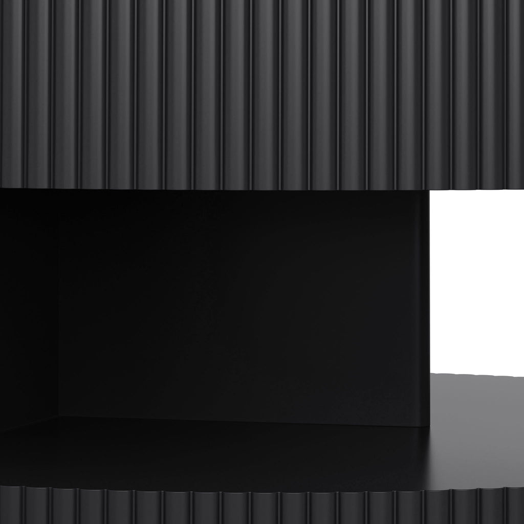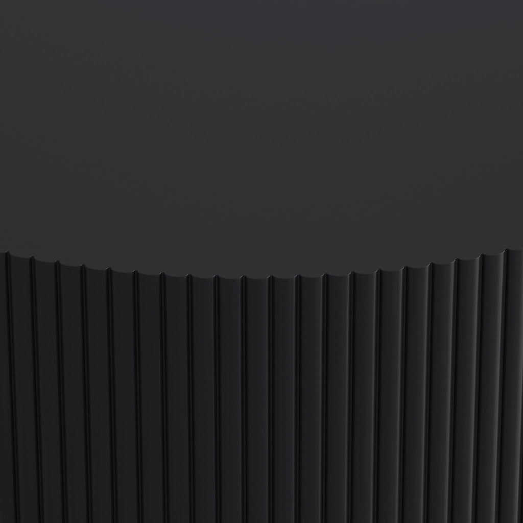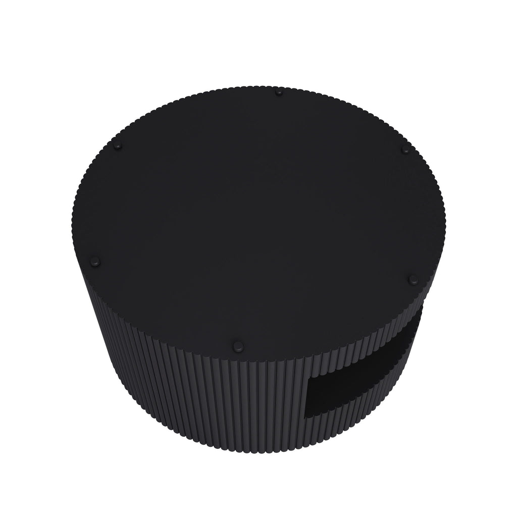 Round Coffee Table With Storage, Vertical Stripe Design - Black