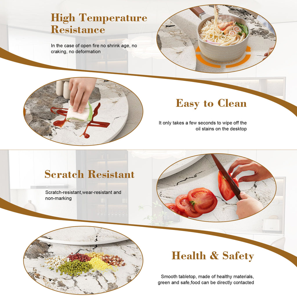 - Heat & Impact Resistant: 12mm sintered stone core withstands high temperatures up to 1200°C and accidental impacts.