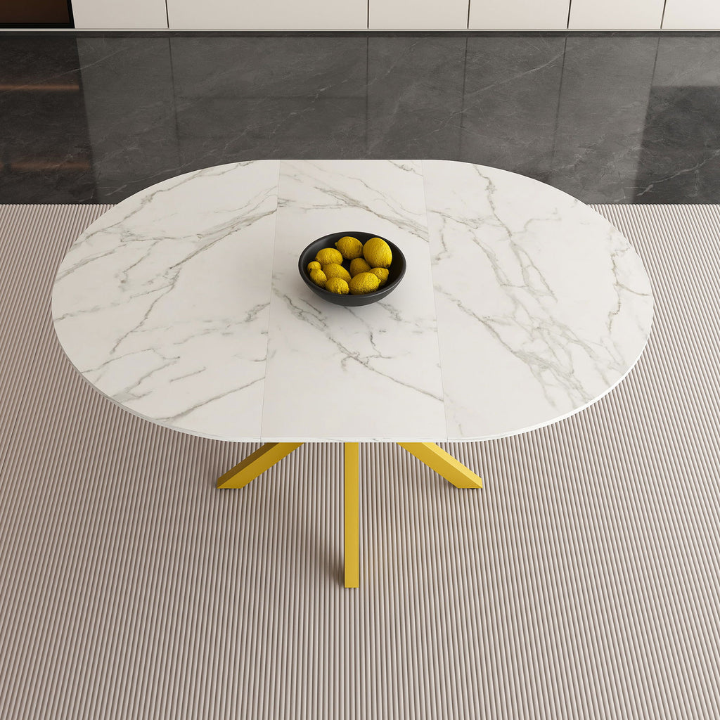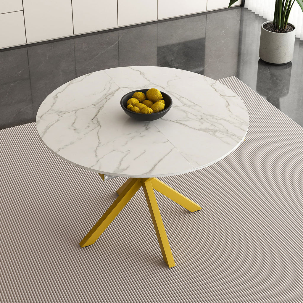 Round Dining Table With Extendable Blades, X Base, Fits 4 - 6 People - White
