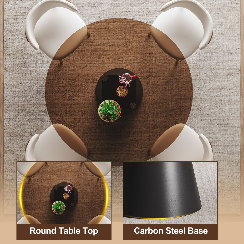 Round Glass Dining Table With Tempered Glass Top, For 2 - 4 People, Apartment And Restaurant Use - Black / Brown