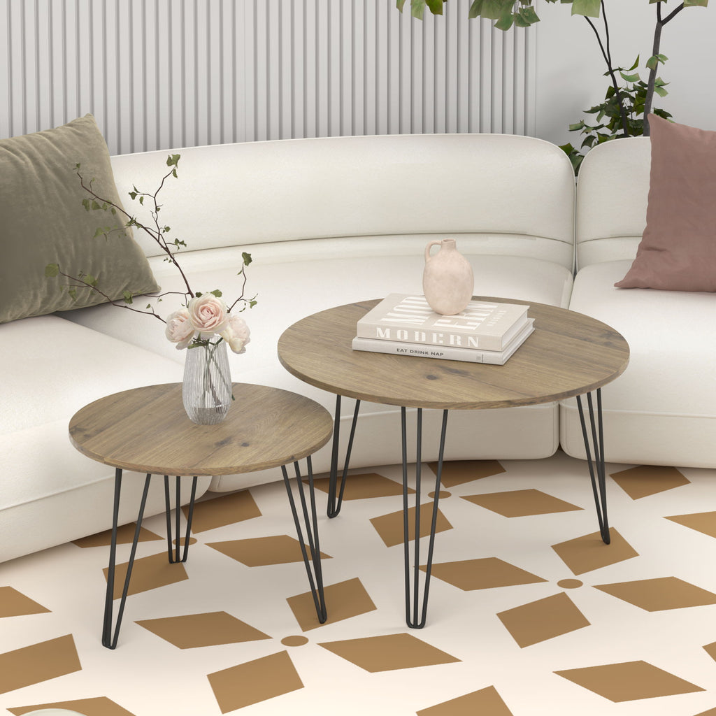 Round Nesting Coffee Table With Sturdy Base For Living Room (Set of 2) - Rustic Brown