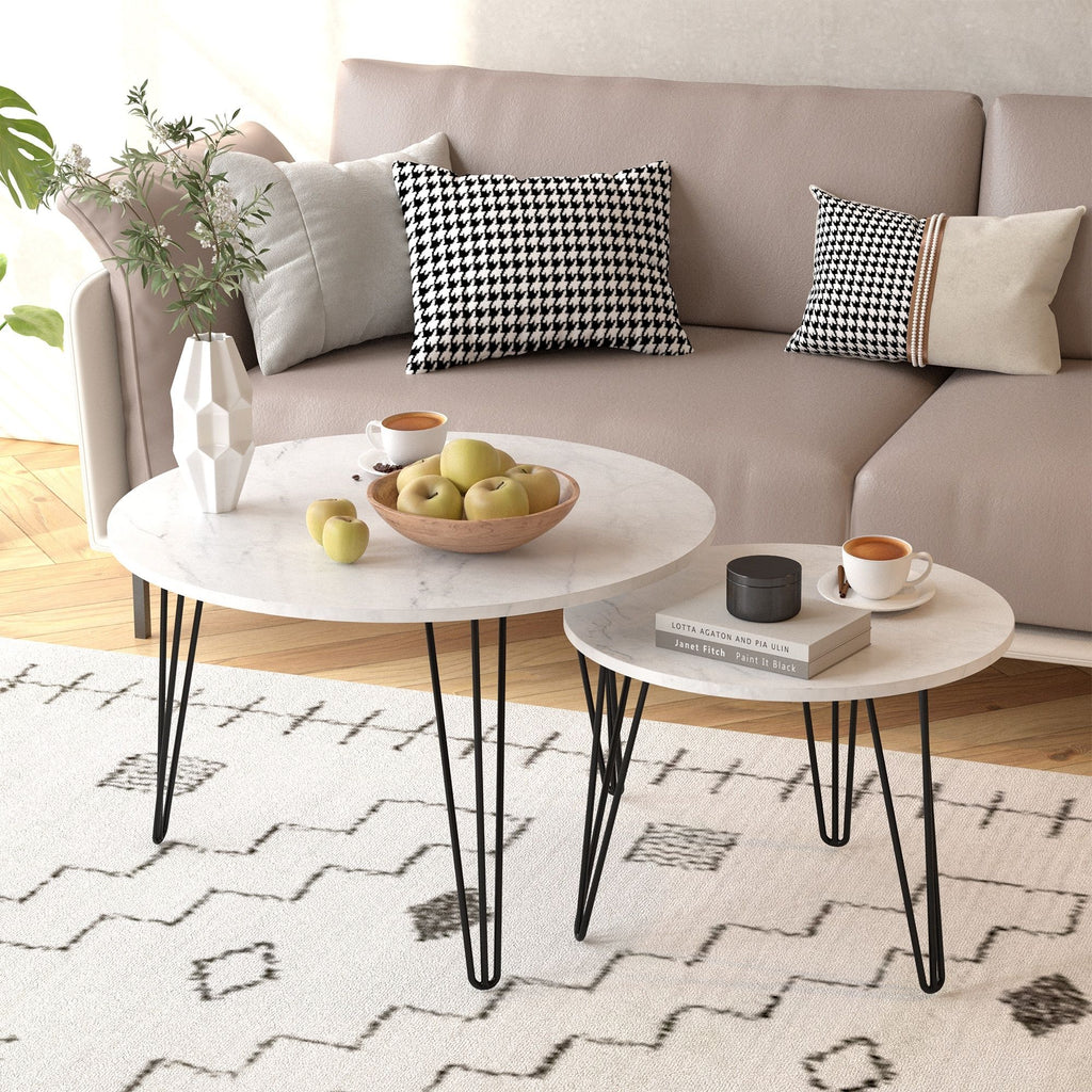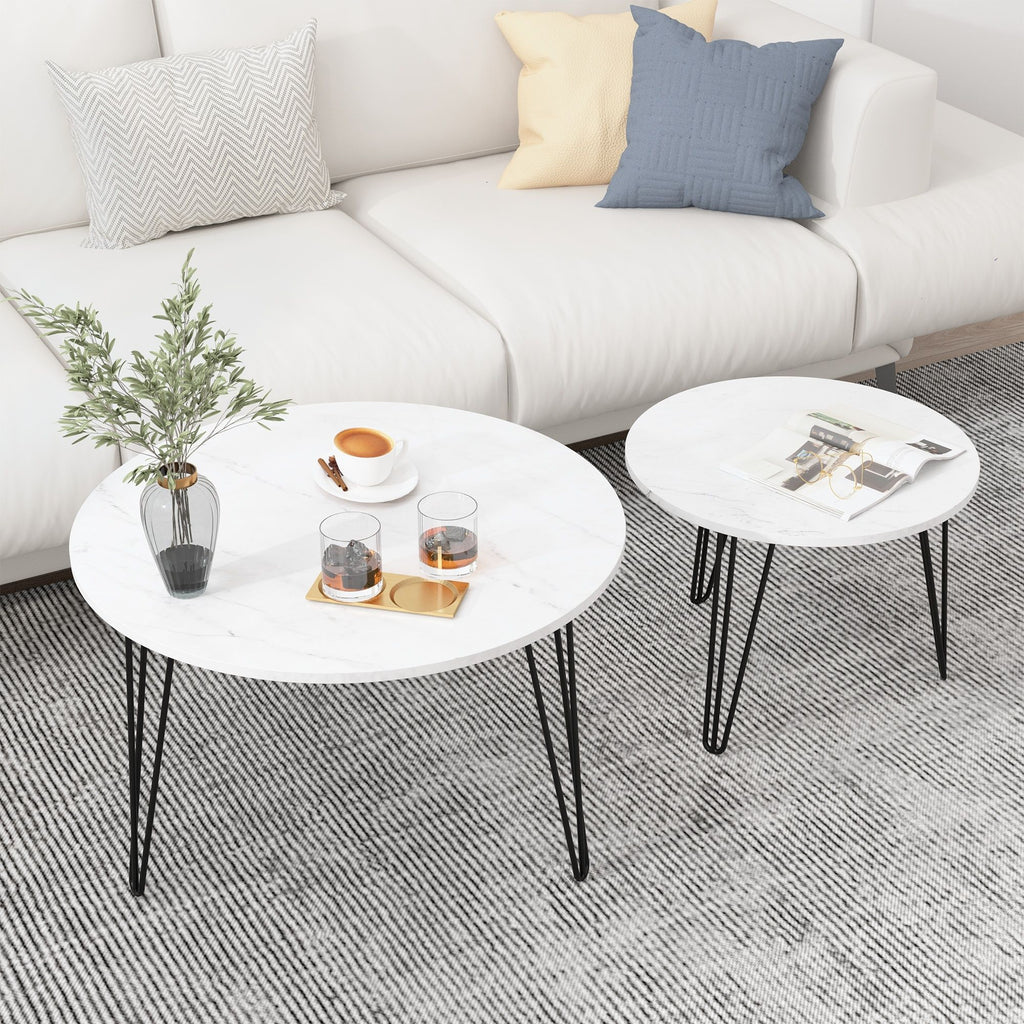 Round Nesting Coffee Table With Sturdy Base For Living Room (Set of 2) - White