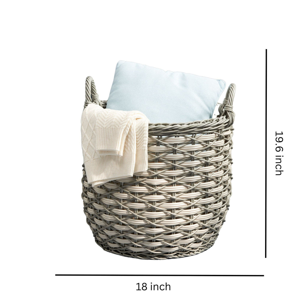 Round Resin Woven Wicker Multi Use Storage Basket With Handles - Cream / Gray