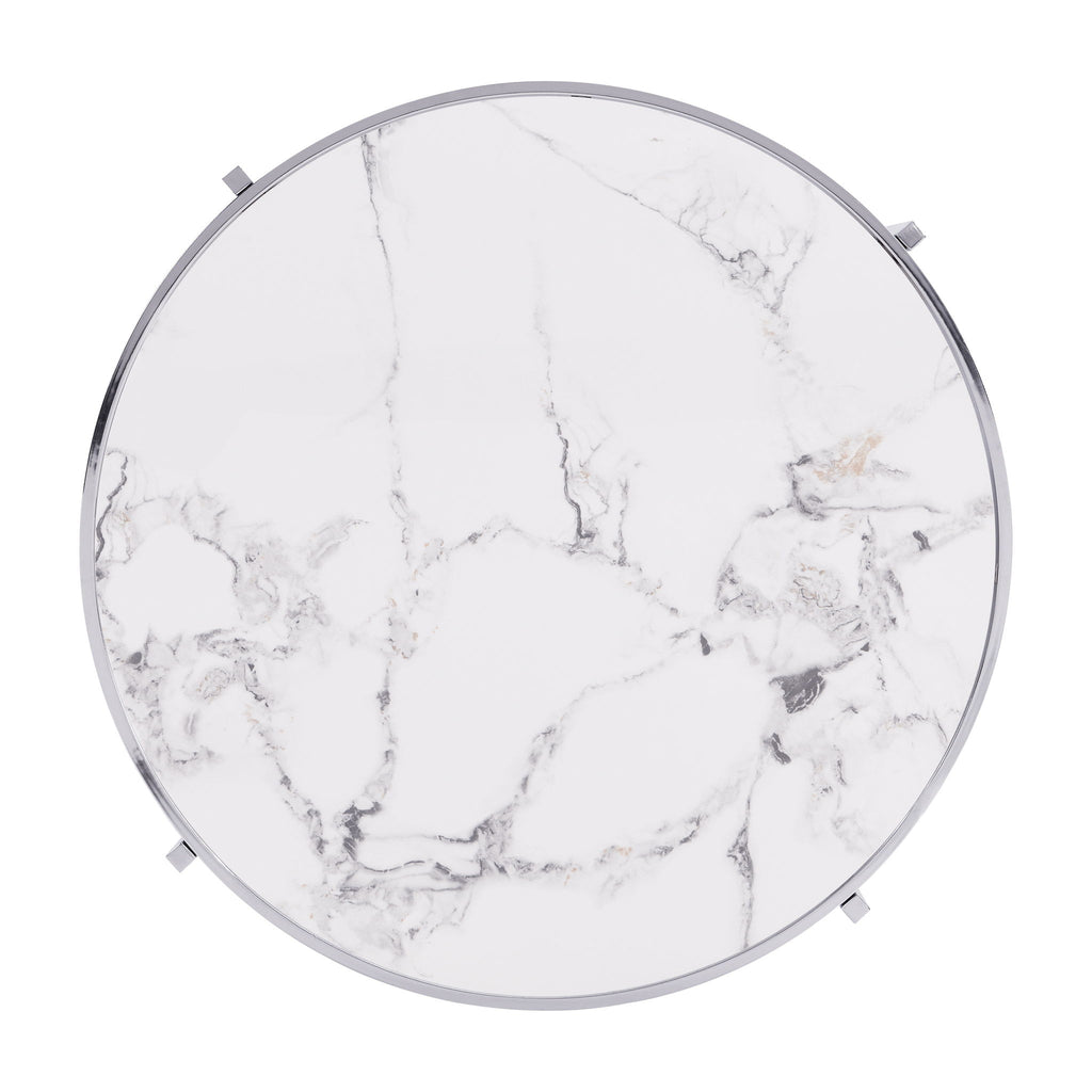 Chrome Round Coffee Table With Sintered Stone Top & Sturdy Metal Frame, Modern Coffee Table For Living Room - Silver