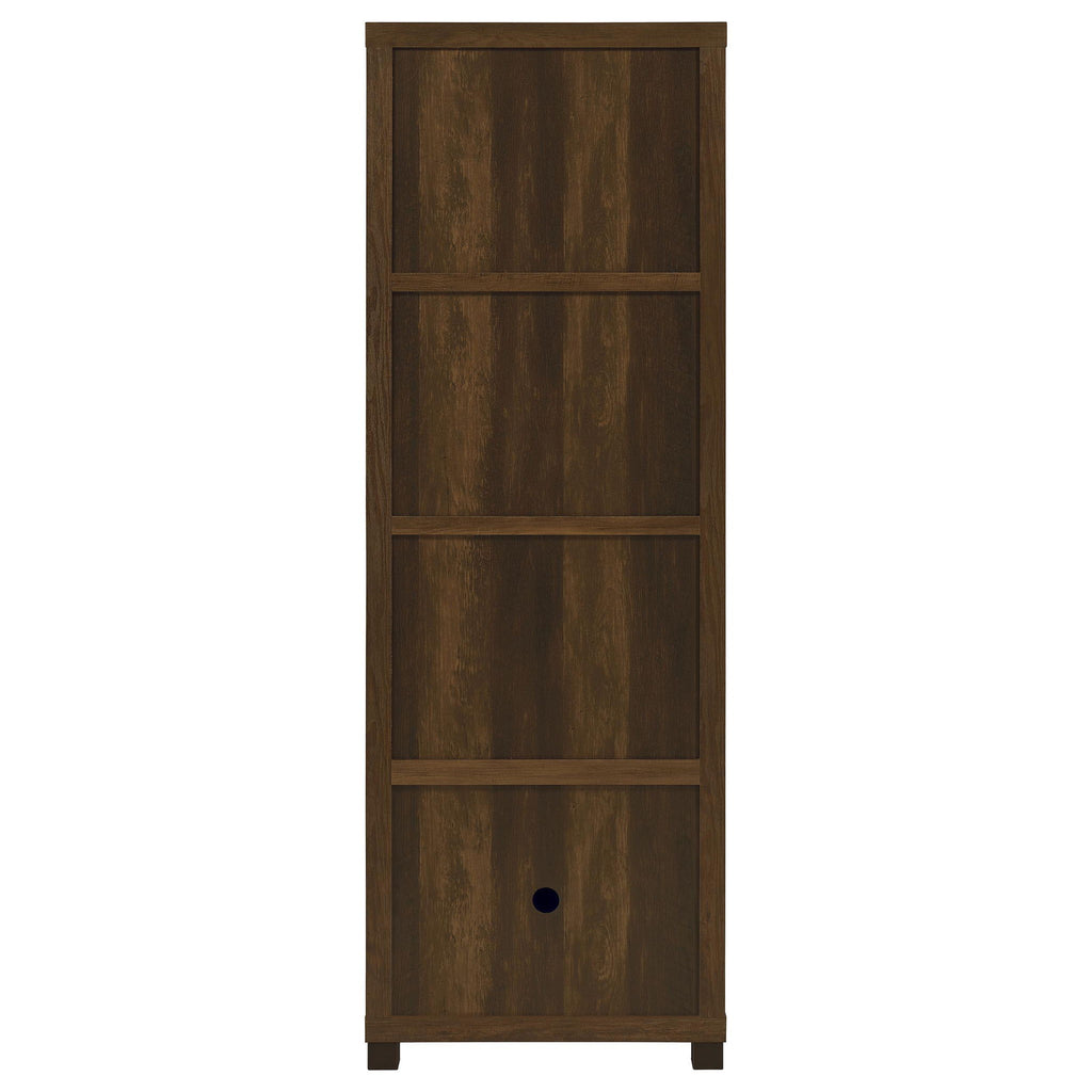Elevate your living area with our rustic urban TV stand, a perfect blend of timeless aesthetics and modern functionality. Highlighted by striking black hardware accents, this piece boasts four ample compartments that ensure your media devices are organized and easily accessible. A sophisticated glass door juxtaposed with fixed shelves adds both style and practicality. For those seeking added storage and a cohesive look, pair this stand with our matching media towers. The stand's boxy silhouette, complemented by smooth surfaces and versatile adjustable shelves, offers a contemporary touch, ensuring it's not just a furniture piece but a statement of design excellence.