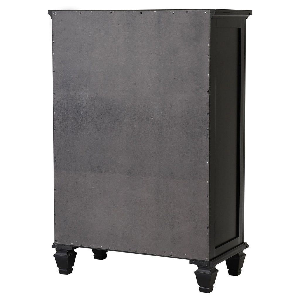 Add both storage and timeless elegance to your bedroom with this beautifully crafted chest of drawers. Featuring five spacious drawers, this chest offers plenty of room to organize your clothing, linens, and other essentials. The felt-lined top drawer provides added protection for delicate items, while the brushed nickel hardware adds a touch of modern sophistication. Constructed from solid hardwood and engineered wood, this chest is designed for durability and lasting appeal. Finished in a neutral color, it complements both traditional and transitional bedroom styles, bringing both beauty and functionality to your space.