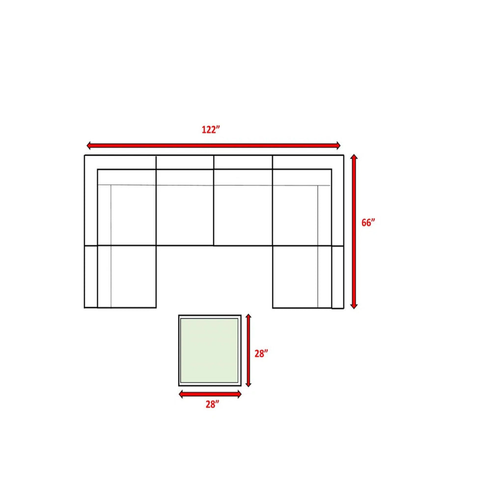 Outdoor Sectional Sofa Set With 11 Cushions, Glass Coffee Table, 4 Person - Brown