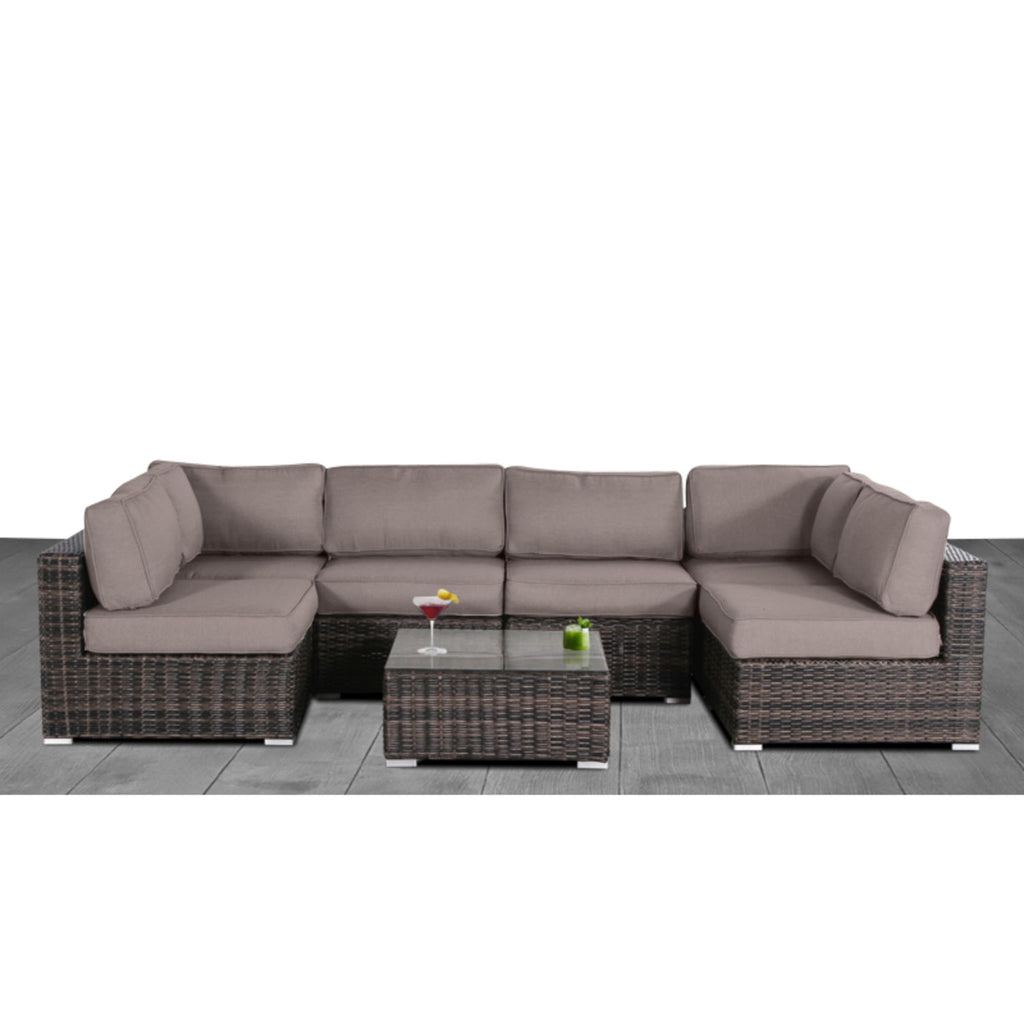 7 Piece Modular Outdoor Conversation Set With Cushions - Brown