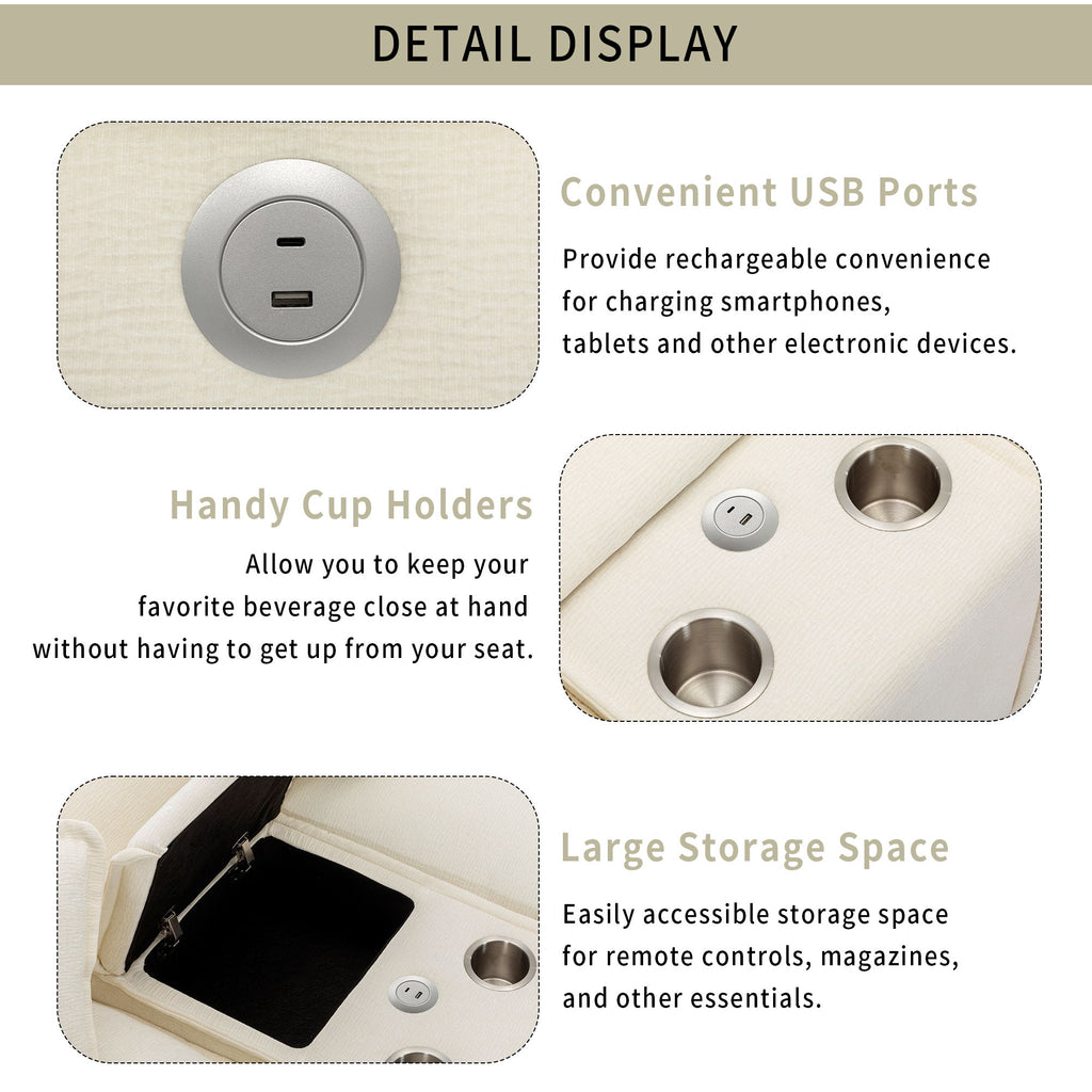- Modern Functionality with USB Ports and Cup Holders: Stay connected with USB charging ports while keeping your favorite drinks close by with two integrated cup holders.