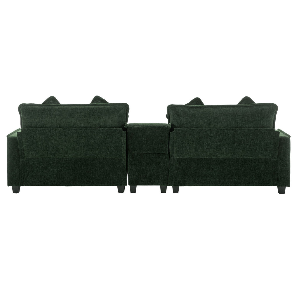 Chenille Upholstered Sectional Sofa With 2 Removable Ottomans, USB Ports, Cup Holders, And Storage - Green