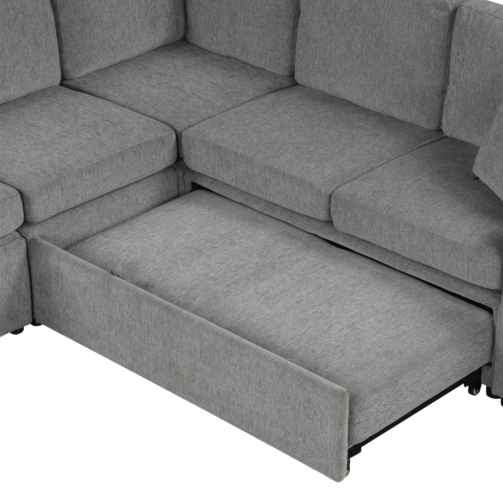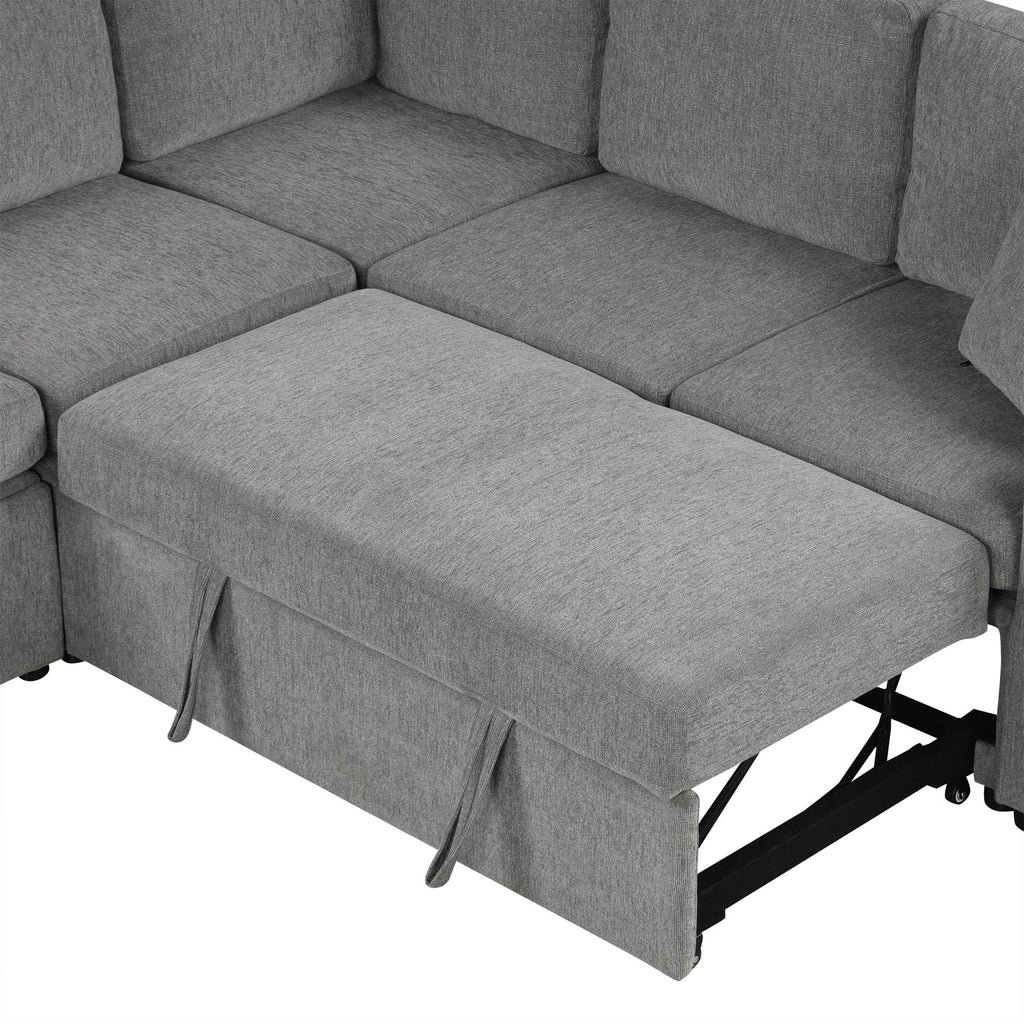 Sectional Sofa Convertible Pull Out Sofa Bed With Movable Storage Ottoman - Gray