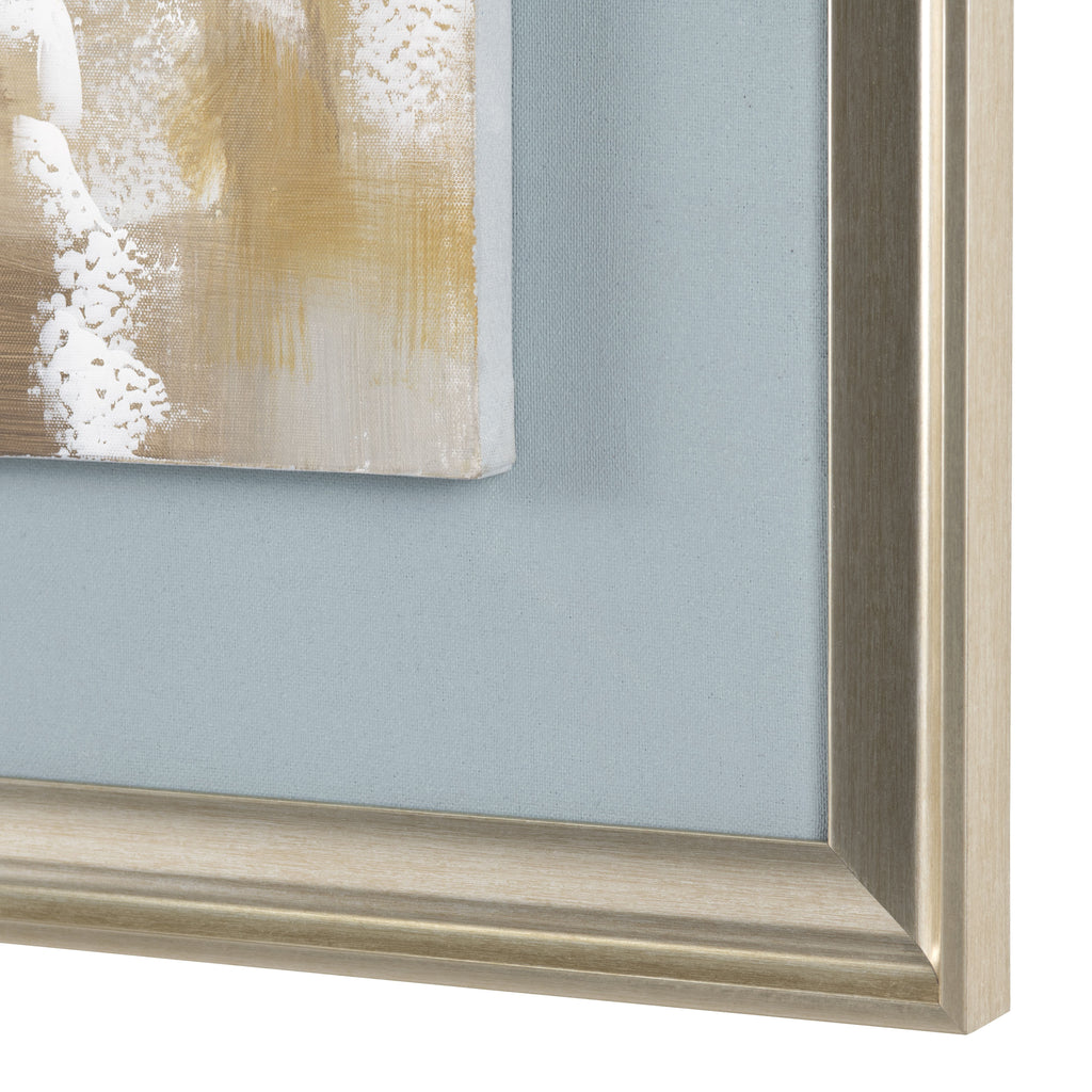 The Crestview Collection Serenity hand-painted Canvas on Mat Board with Silver Frame features two images that will add a calming, peaceful feeling to your home. These hand-painted images on canvas have a dusty blue mat and silver frame that complement the soft colors of the painting. These transitional style images each measure 47.4-inches x 47.4-inches square.