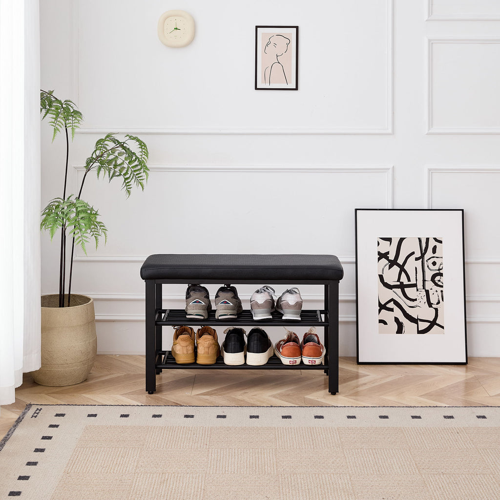 Shoe Bench With Cushion, Storage Seat For Entryway - Black Pu