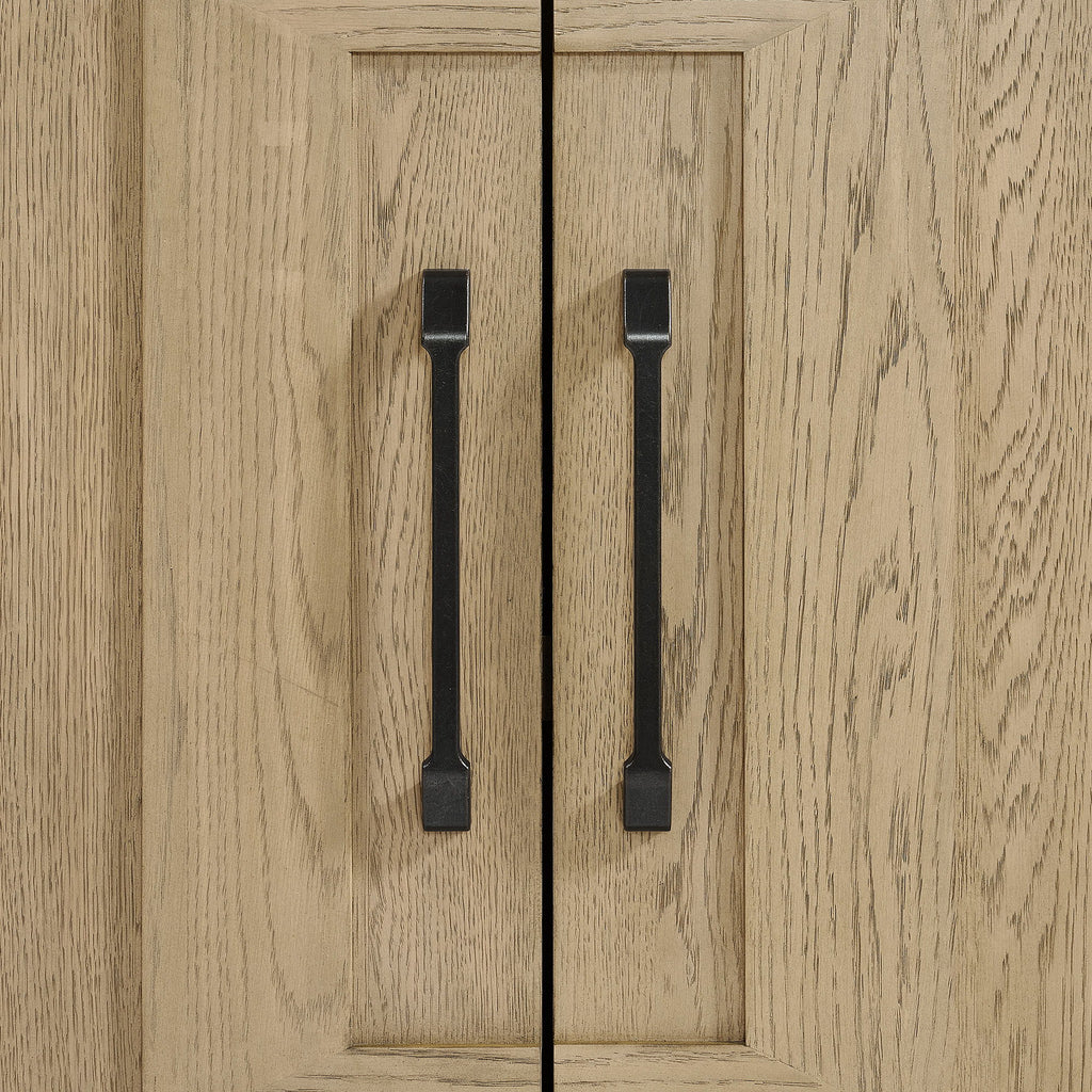 - Ample storage: Two double-doored cabinets with wine racks, shelves, and drawers for organized storage