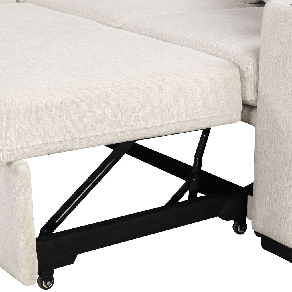 Sofa Bed With USB Ports And Cup Holders, Single Pull Out Couch For Living Room - Beige
