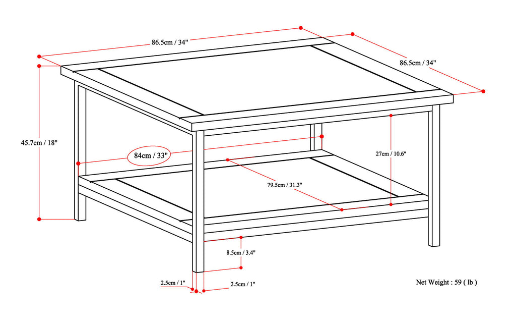 34.0"W x 34.0"D x 18.0"H - 68.3 lb