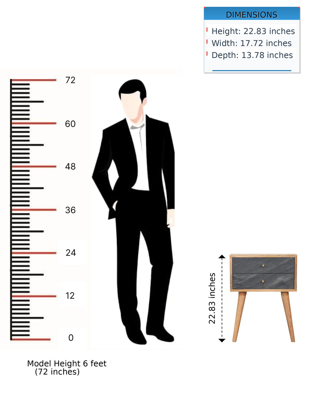 - Slade Nightstand - This nightstand has been constructed from 100% solid mango wood in a fine oak-ish finish. The beautiful slate drawers are definitely prominent in this piece and provide a lovely contrast with the finish of the wood. Other features include nordic style legs and shiny bass knobs.