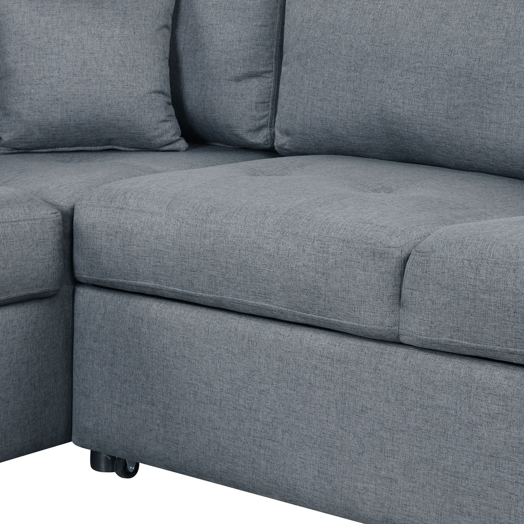 - Versatile Sleeper Function: L-shape sofa easily converts into a bed with a portable handle and bottom pulley device, ideal for accommodating overnight guests.