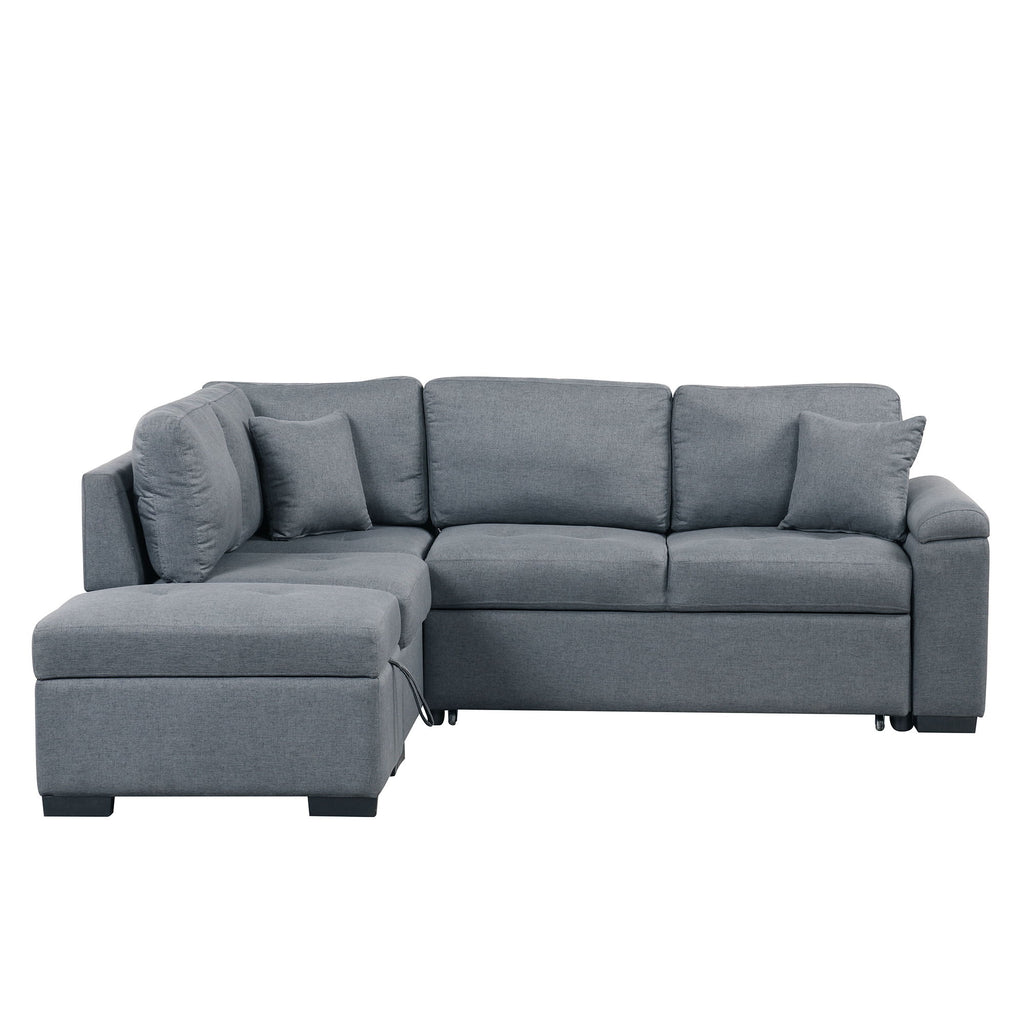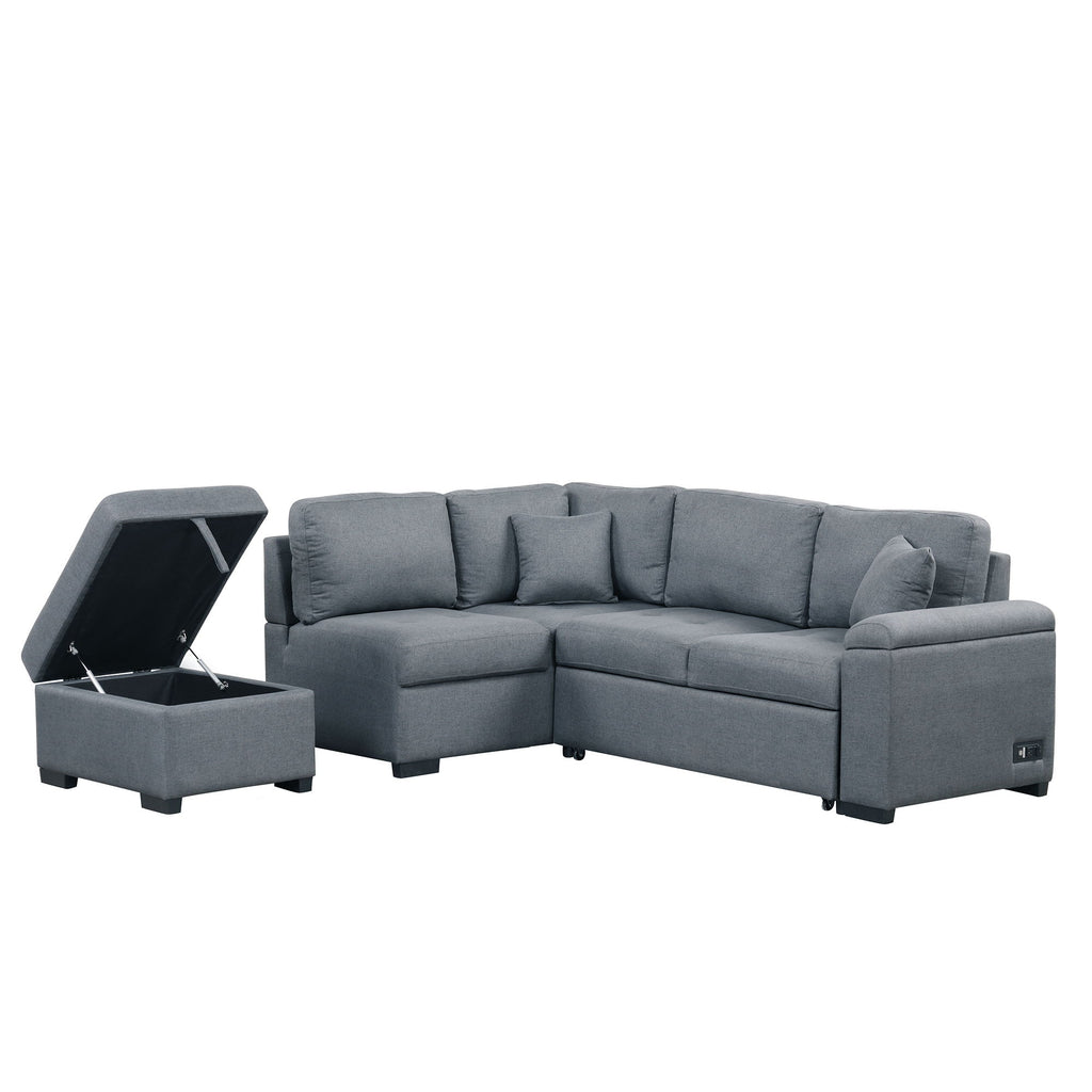 Sleeper Sectional Sofa, L-Shape Corner Couch Sofa - Bed With Storage Ottoman & Hidden Arm Storage & USB Charge For Living Room Apartment - Gray