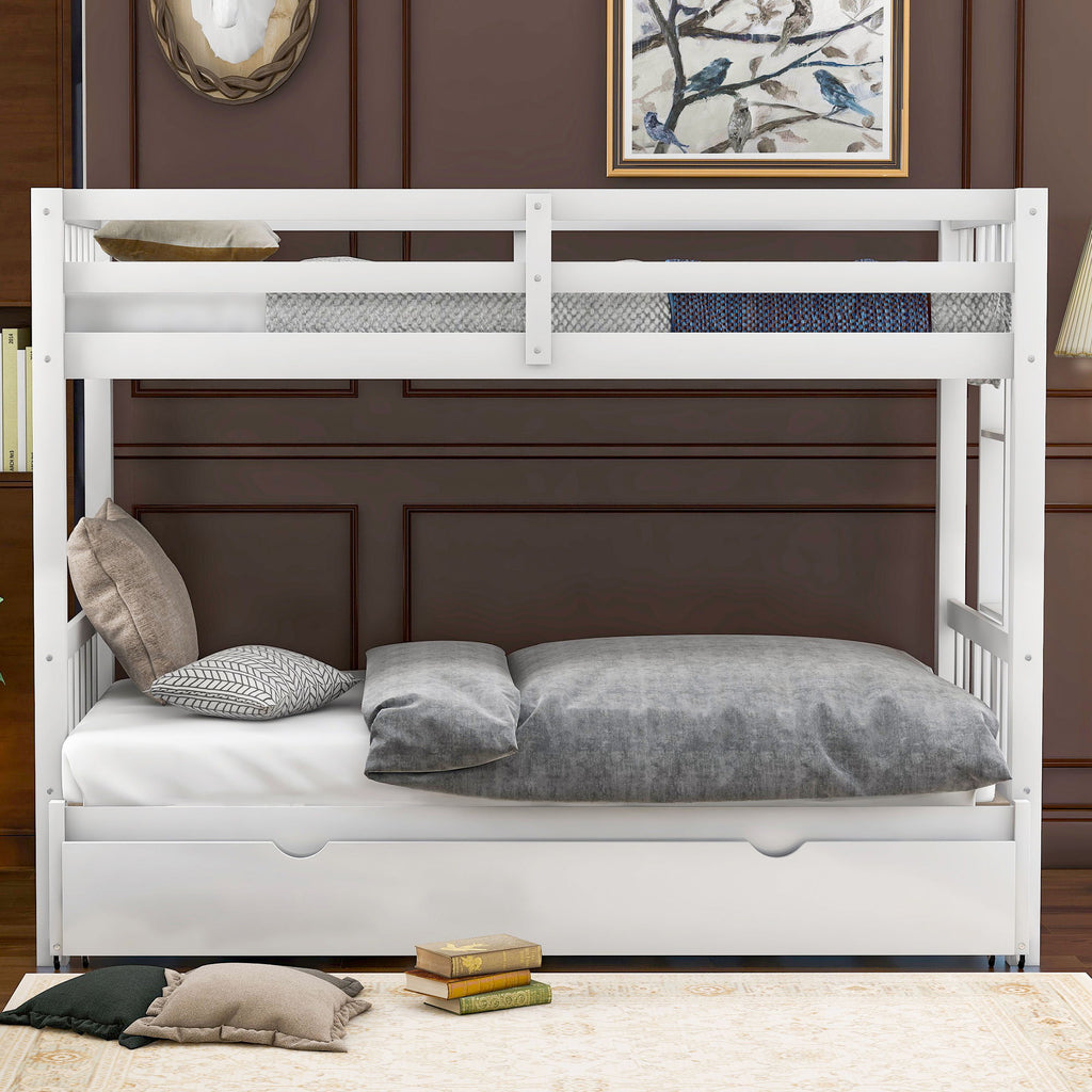 Twin Over Pull Out Bunk Bed With Trundle - White