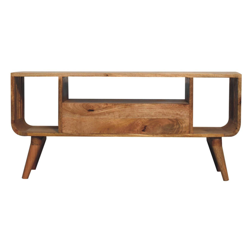 - Soba Nordic Multi Media Unit - This Soba Media Unit has been constructed from 100% solid mango wood and has a lovely natural oak-ish finish. It features a unique ridged design on either side of the piece, t-bar handles, as well as 4 Nordic style legs for stability and a modern touch. Make full use of this piece in your living room or hallway and let it take care of storing all your belongings.