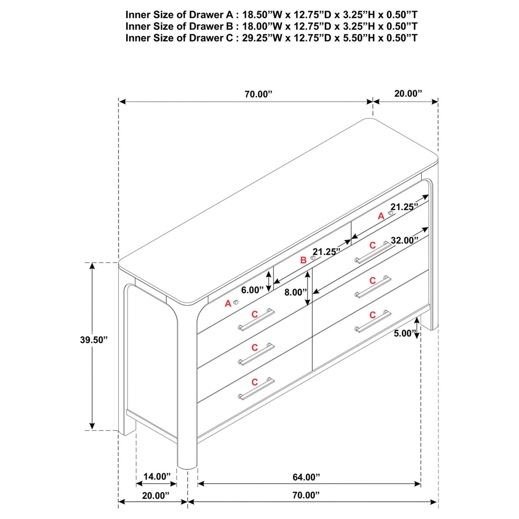 With sculptural elegance and quiet drama, this bedroom set centers around a stunning canopy bed framed by arched posts and softened edges. A tailored, upholstered headboard adds comfort and contrast, while coordinating storage pieces echo the same graceful curves and thoughtful detailing. Felt-lined drawers, hidden compartments, and smooth-gliding function offer both luxury and utility. Crafted from mahogany, engineered wood, mango veneer, and fabric, the set brings lasting poise and presence to the bedroom.