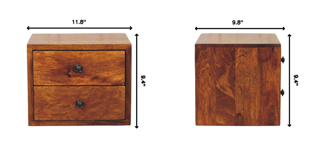 - Nightstand Solis 1-Drawer Wall Mounted Artisan Furniture - Introducing the Solis 1-Drawer Wall Mounted Nightstand, a functional and stylish piece from the Solis Collection. Handcrafted from 100% solid mango wood with a warm finish, this wall-mounted nightstand features a single drawer for discreet storage and an open slot sleek metal knob for easy access to your essentials or decorative items. Its compact, space-saving design adds a touch of modern elegance to any bedroom while keeping your floor space clear. The Solis 1-Drawer Wall Nightstand perfectly balances practicality and sophistication, making it an essential addition to contemporary living spaces.