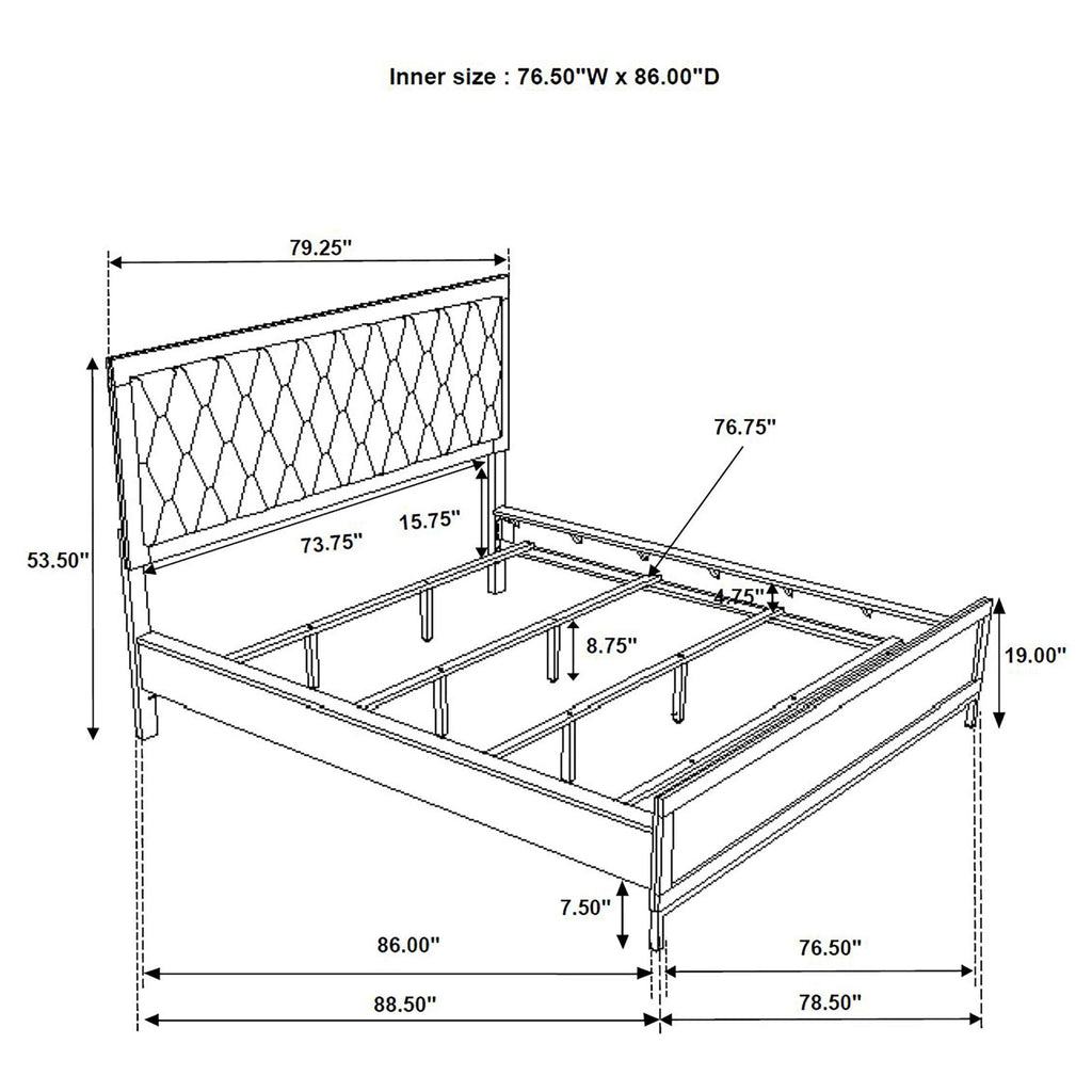 Bring geometric detail to your bedroom with the charming hexagon motif featured on this modern upholstered bed. Offering a contemporary look and feel, it creates a stylish focal point with its rich contrast of color and texture. The padded headboard offers excellent comfort and dark gray fabric upholstery. A streamlined wood frame adds a bright white finish to the rectangular head and footboards, creating an open, airy look. This stylish bed is complete with black accents in the base of the footboard and requires a foundation for use.