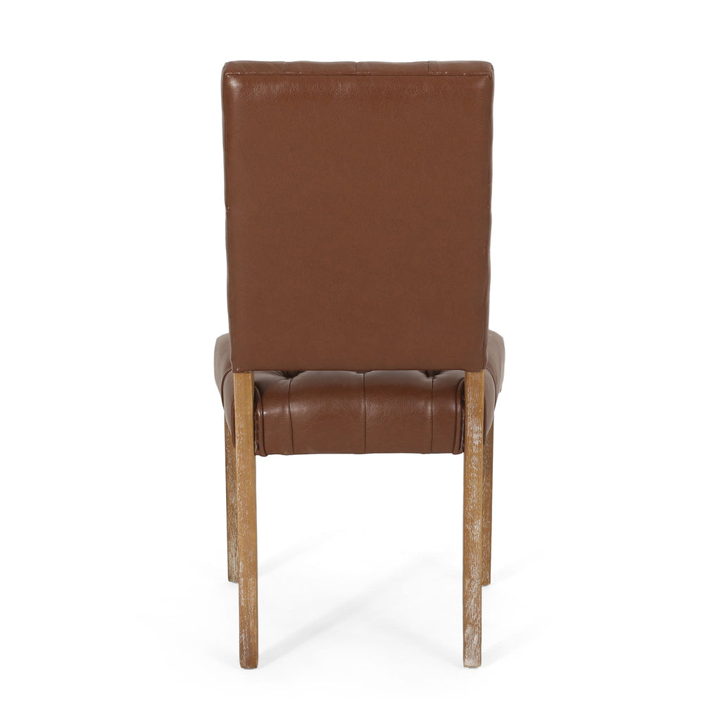 Sophisticated Dining Chair Set With Button Tufting - Light Brown / Weathered Wood