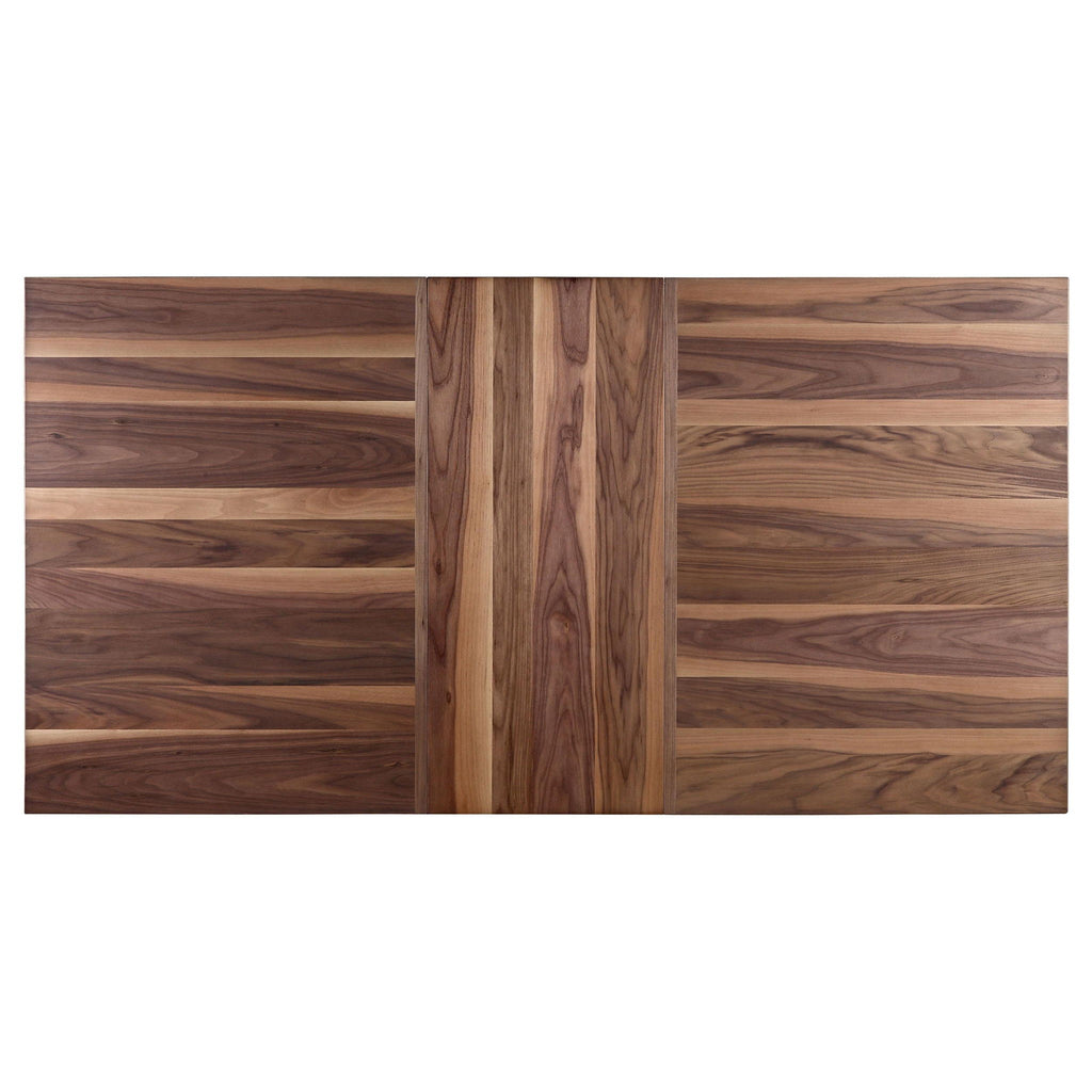 This dining set blends clean lines, natural textures, and everyday functionality for a timeless look. Crafted from solid rubberwood with a warm natural walnut finish, the rectangular dining table features a sappy walnut veneer top and an 18-inch removable extension leaf for added seating. Ergonomically contoured side chairs include padded seats and backs upholstered in soft, durable fabric. With its harmonious balance of simplicity and warmth, this set enhances both casual and formal dining spaces.