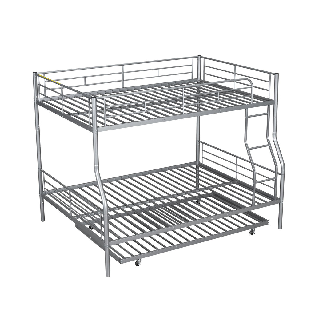 Full Over Full Metal Bunk Bed With Trundle - Silver