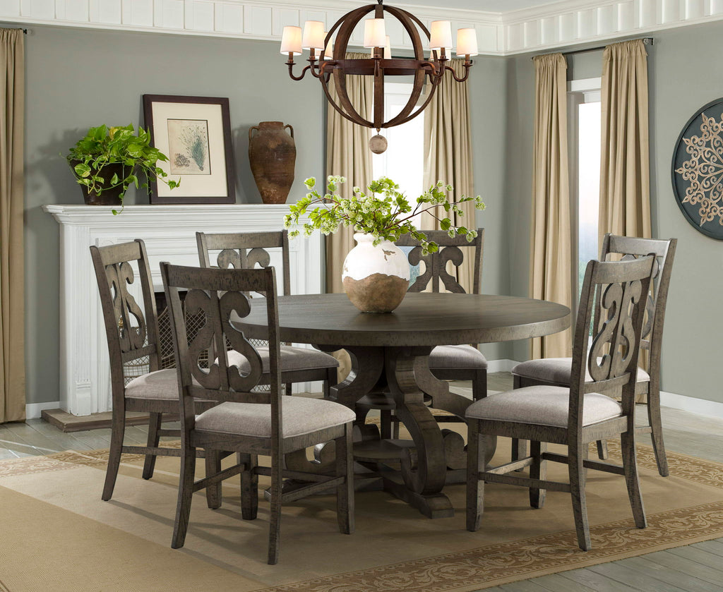 Stone - 7 Piece Dining Set (Round Table And Six Chairs) - Smokey Walnut