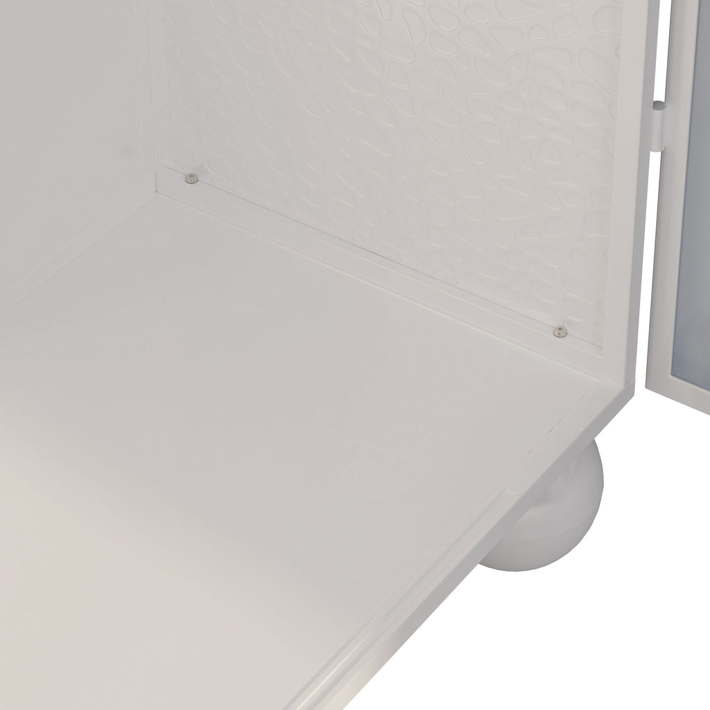 - Stylish Modern Design: White finish with transparent glass and iron frame adds elegance to any room.
